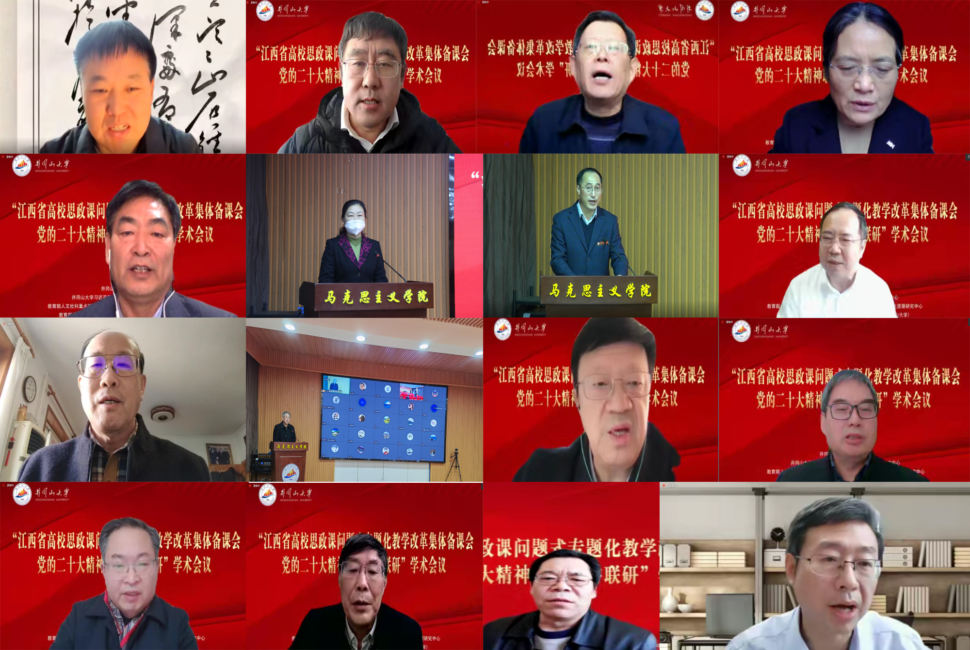 在随后进行的 “江西省高校思政课问题式专题化教学改革集体备课会党的二十大精神联学联讲联研”学术研讨会上,19位马克思主义理论学科专家学者“云聚”一堂,为深入学习阐释党的二十大精神,进一步推进新时代马克思主义理论创新发展、新时代思政课高质量发展、马克思主义理论学科建设快速发展,与大家分享了诸多富有创新性的见解和思想。学者们结合党的二十大重大理论创新成果,围绕“中国式现代化”“党的自我革命”“习近平新时代中国特色社会主义思想”“红色文化融入思想政治理论课”等主题展开研讨,为我校进一步提升思想政治理论课办学质量提供新的动能。