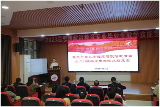 为了更好地加强思想政治教育专业(师范类)学生的培养,检验2023届师范生实习效果,为中学输送合格的思想政治课教师,马克思主义学院2022年10月15日举办2023届思想政治教育专业毕业生教学技能比赛,试讲小组推选了12名学生参加比赛。