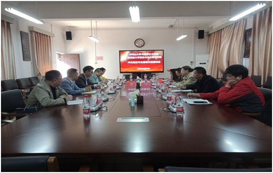 10月21日上午,在广西大学马克思主义学院参加座谈交流。广西大学马克思主义学院党委书记周瑞超、院长徐秦法、副院长陆秀红、基础课教研部主任陈立言、刘爱新副教授、陆海霞副教授参加座谈会,周瑞超书记主持。