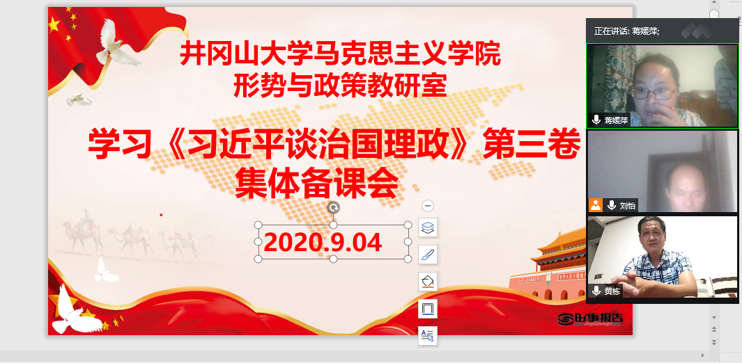 近日,为学习贯彻好《习近平谈治国理政》第三卷,完整全面准确深刻领会习近平总书记重要讲话精神,推动习近平新时代中国特色社会主义思想进教材、进课堂,马克思主义学院各教研室通过线下、线上等形式组织召开学习《习近平谈治国理政》第三卷集体备课会。