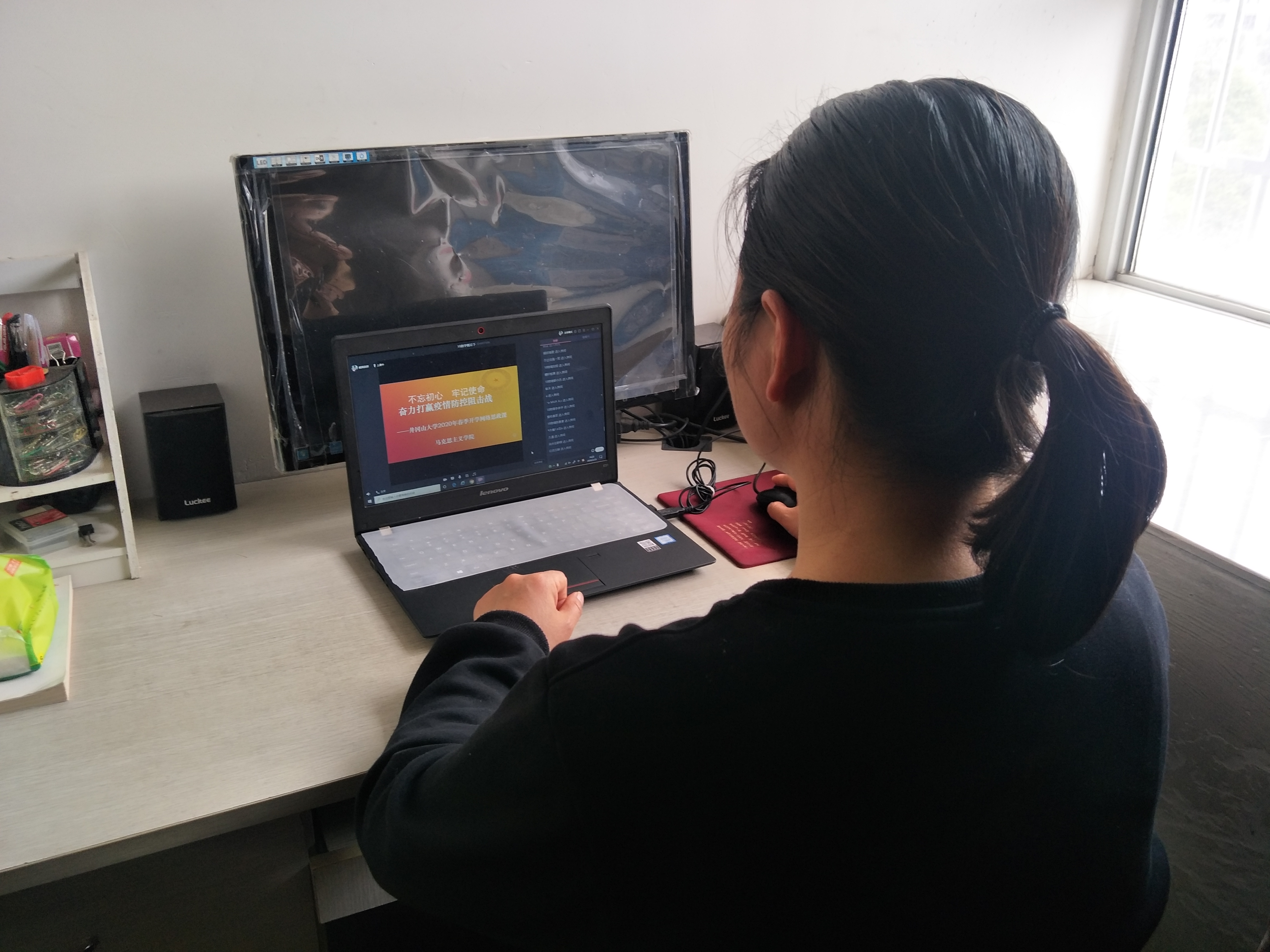 在全国上下众志成城、同舟共济抗击新冠肺炎疫情的关键时刻,马克思主义学院积极把握教育契机,通过线上教学,充分利用抗击疫情这个实践平台。2月24日起为同学们上好特殊的开学第一课《不忘初心,牢记使命 奋力打赢疫情防控阻击战》,在学生中引起了广泛的共鸣。同学们纷纷表示,制度优越,党的领导是实现全国一盘棋集中力量办大事的前提;国强民富,是战胜重大苦难和赢得国际社会尊重的基础;大难当前,爱国主义是凝聚空前强大中国力量的源泉;榜样引领,崇高价值追求是成就个人辉煌人生的动力。