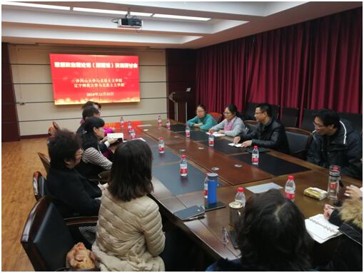 12月25日上午,我院教师又赶往了第三站——辽宁师范大学马克思主义学院去调研。鲍副院长介绍了辽宁师范大学的概况和马克思主义学院的的教学与科研的总体情况。原理教研室主任兰明老师向我们传授了原理课“交互式问题导向教学”的模式,还带领我院教师参观了“思想政治教育中心”。