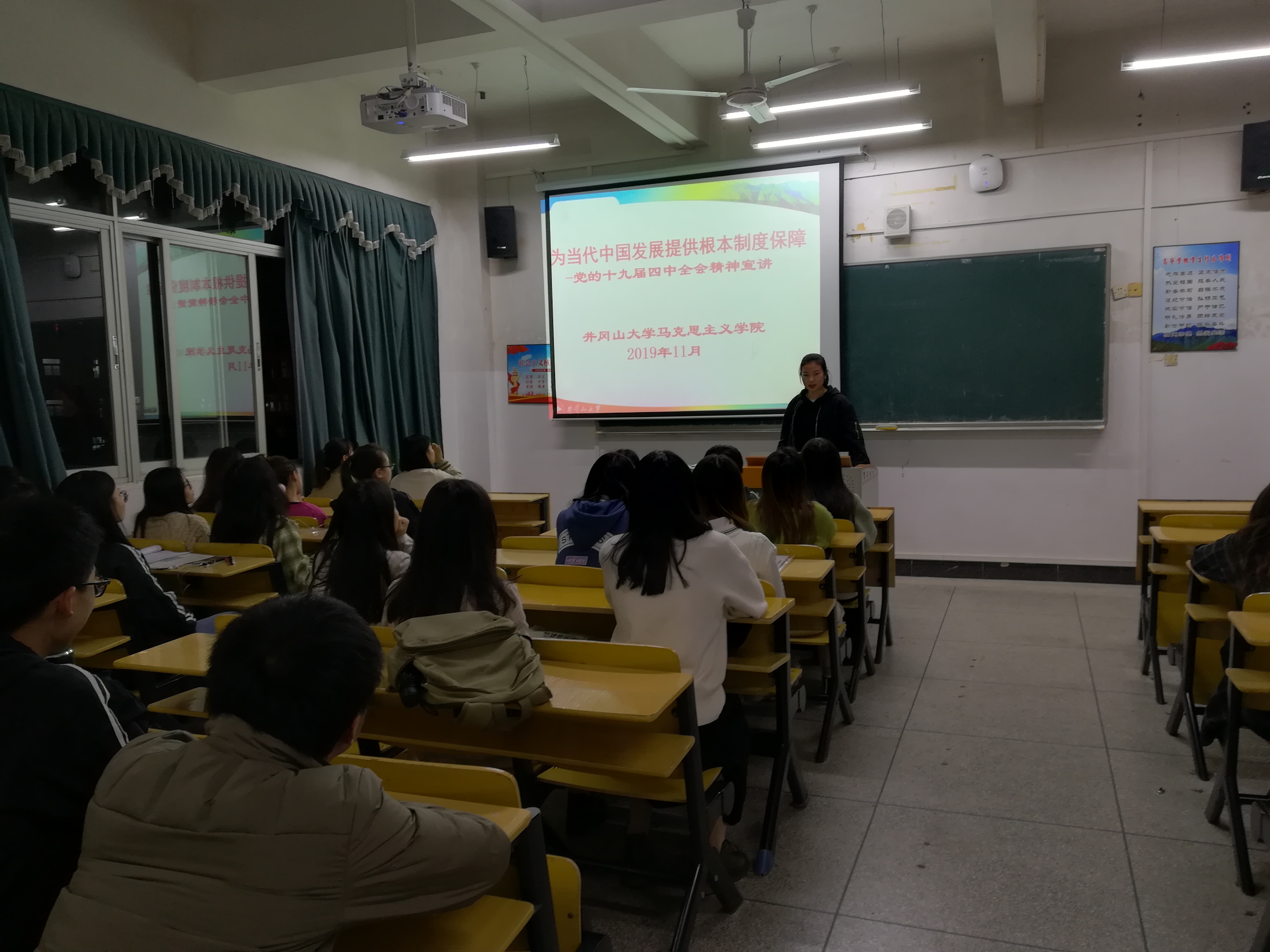 为把学习宣传贯彻党的十九届四中全会精神引向深入,向同学们宣讲解读全会精神实质和深刻内涵。近日,我院各班召开了“十九届四中全会精神”宣讲班会。