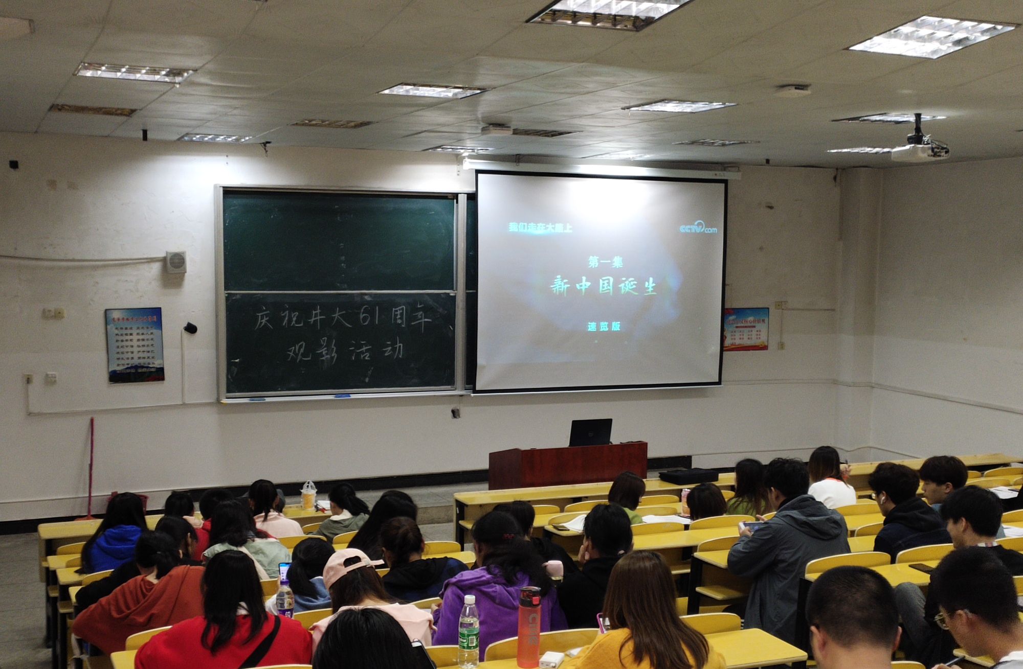 为弘扬和培育爱国主义精神,提高大学生素质,加强思想政治觉悟,积极响应61周年校庆,学院学生党支部联合学院团委组织全体党员及全院师生于10月28日下午观看纪录片《我们走在大路上》,感受一场心灵与视觉的盛宴。观影过程中,全体师生聚精会神,将身心都投入电影情节中,认真观看影片,被共产党人的爱国救国之情所打动。该活动引发师生共鸣,激起师生浓浓地爱国热忱。