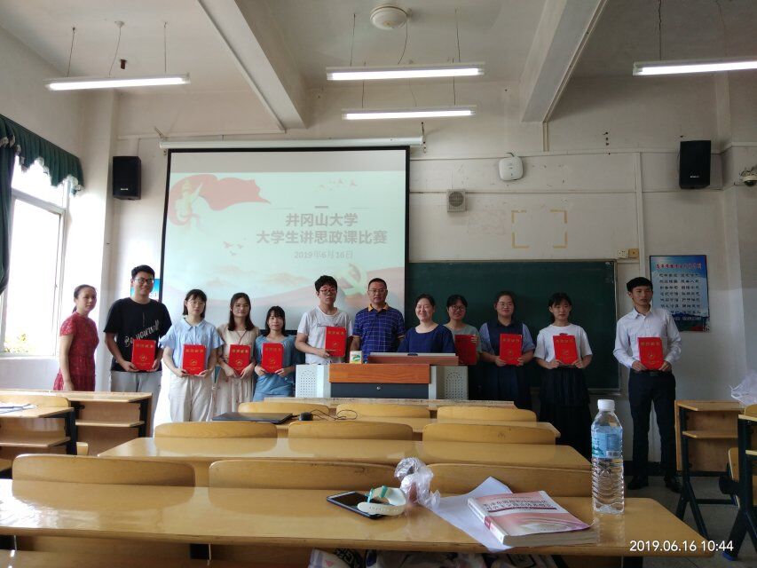 为了更好地落实习近平总书记在学校思想政治理论课教师座谈会上的讲话精神,进一步推动我校思想政治理论课的改革与创新,提高我校思想政治理论课的“抬头率”,增强学生对思想政治理论课的获得感,我校积极推动开展“大学生讲思想政治理论课”的活动,并且举办了全校范围内“大学生讲思政课”的比赛。为了展示我校学生讲思想政治理论课的风采,我院在2019年6月16日举办了“井冈山大学2019年大学生讲思政课”总决赛活动。我院孙斌副院长担任了本次比赛的总策划,肖海鹰、任俊宏、蒋媛萍、李琼、李兴建、毛丹老师担任了评委,本次比赛的选手是由经过初赛从各个学院选拔出来的优胜者组成。