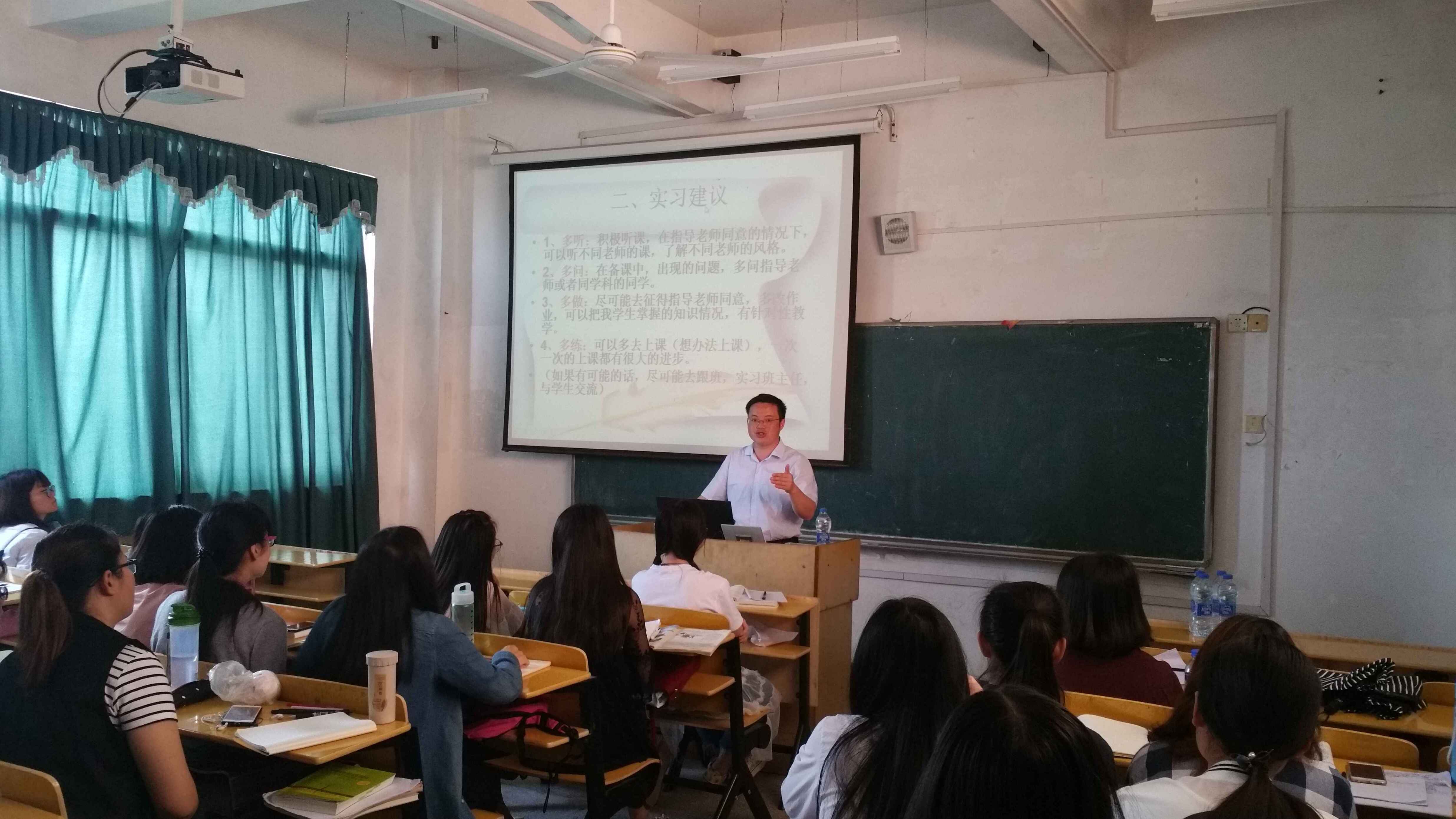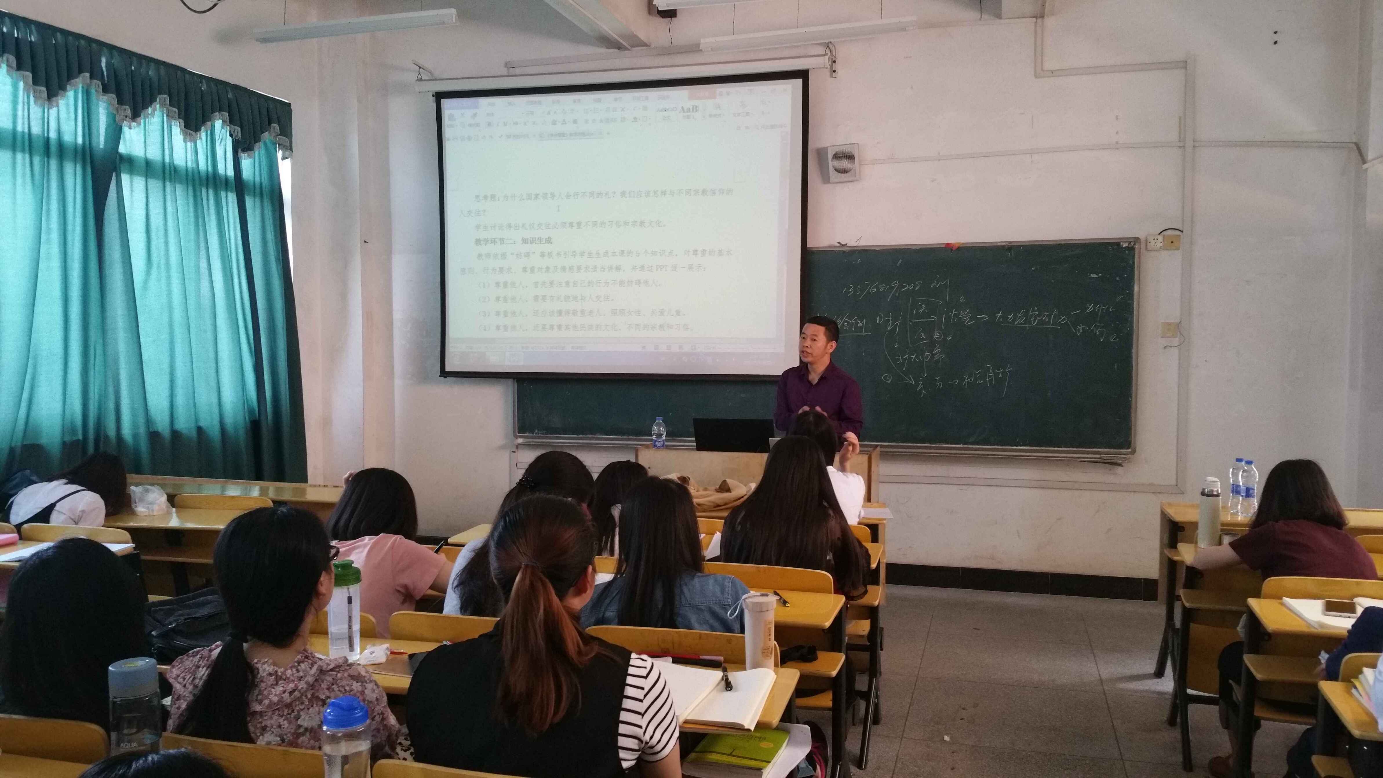 10时,由安福城关中学的贺剑平老师为同学们进行了初中思政课的示范教学,贺老师就初中方面的教学提出了自己多年的经验方法,告诫同学们一切从实际出发,在遇到课堂突发事件时要学会变通。强调对于作为初中生的教学对象,重要的是情感态度与价值观方面的培养。要对初中教学有清醒的认识。最后,同学们就即将开展的试讲工作同老师进行了交流与提问。