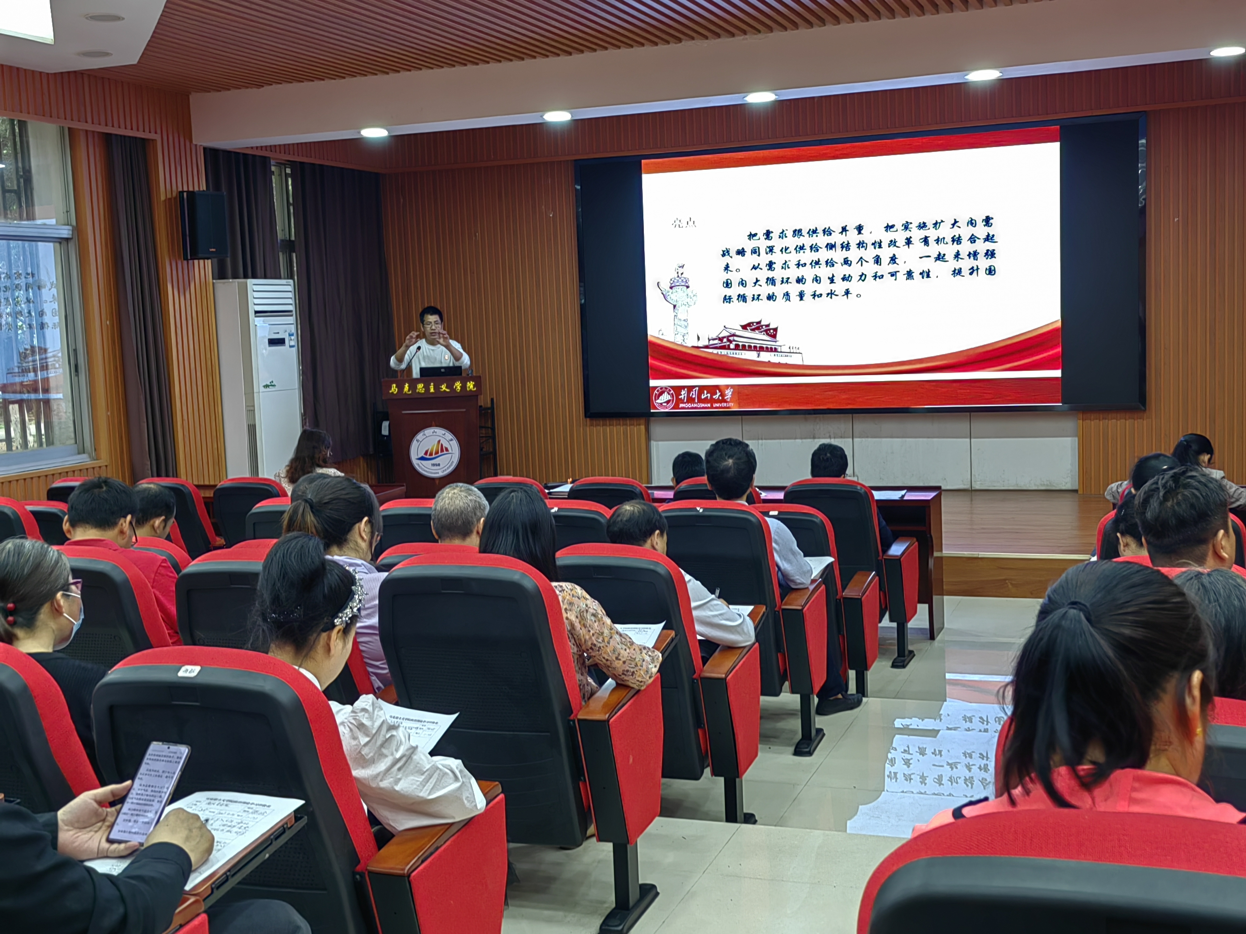 为进一步把学习贯彻习近平新时代中国特色社会主义思想主题教育推向深入,5月4日下午,学院召开学习贯彻习近平新时代中国特色社会主义思想主题教育专题学习会。时玉柱、尹婧两位老师领学,学院全体教职工参加。