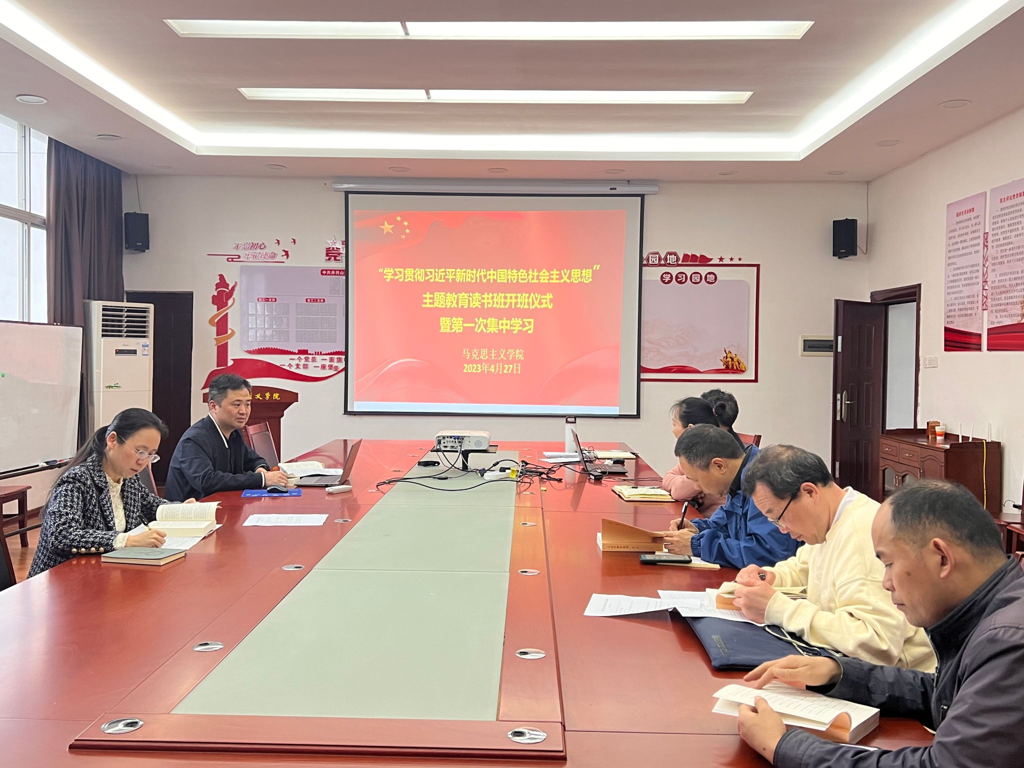 4月27日下午,马克思主义学院在1栋307会议室举行学习贯彻习近平新时代中国特色社会主义思想主题教育读书班开班式并开展第一次集中学习,学院领导班子成员、各党支部支部书记和学院科级干部参加集中学习。学院党委书记叶丹主持学习会。