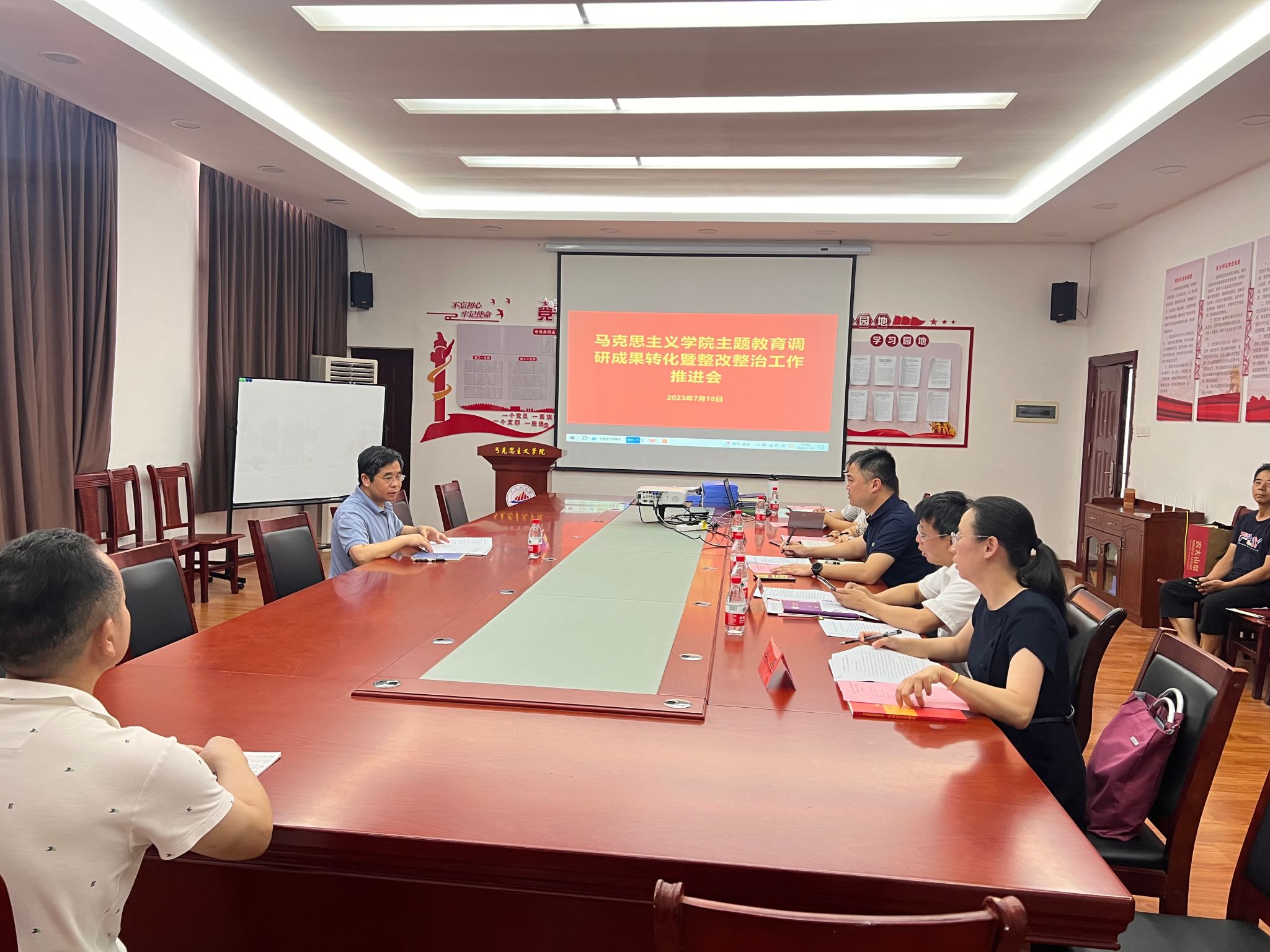 7月18日,马克思主义学院党委主题教育调研成果转化暨整改整治工作推进会召开,学院领导班子成员、各党支部书记、教职工代表参加了会议,会议由学院党委书记、主题教育领导小组组长叶丹主持,校党委常委、副校长肖宜安与会指导。