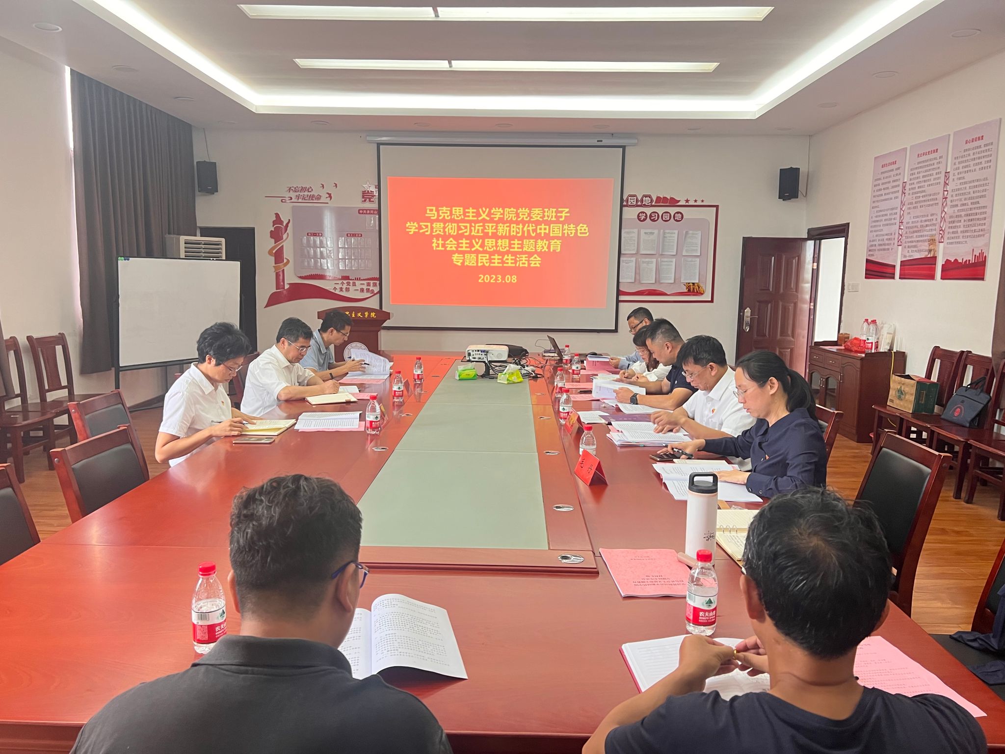 根据学校部署和学院专题民主生活会方案要求,8月31日,马克思主义学院党委班子在1栋307会议室召开了学习贯彻习近平新时代中国特色社会主义思想主题教育专题民主生活会。督导组组长、校党委常委、副校长肖宜安一行3人到会指导并进行了点评,学院党委班子成员肖发生、吴丽花、毛丹、肖海鹰出席,教工党员代表列席,党委书记叶丹主持会议。此前,党委常委班子成员开展了集中学习和谈心谈话。