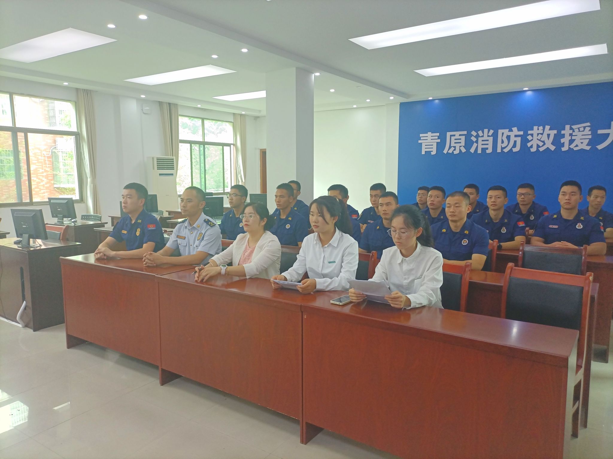 活动伊始,青原区消防救援大队政治教导员罗潇斌对各位老师和同学的到来表示欢迎,并向参加活动的师生介绍了消防大队,讲解了消防救援人员的职责。吴丽花介绍了学院的基本情况和办学特色,对青原区消防救援大队的支持表达了诚挚的谢意。她表示将持续加强交流,共同开展活动,推动合作与共建,结合专业和特色,实现彼此双赢。