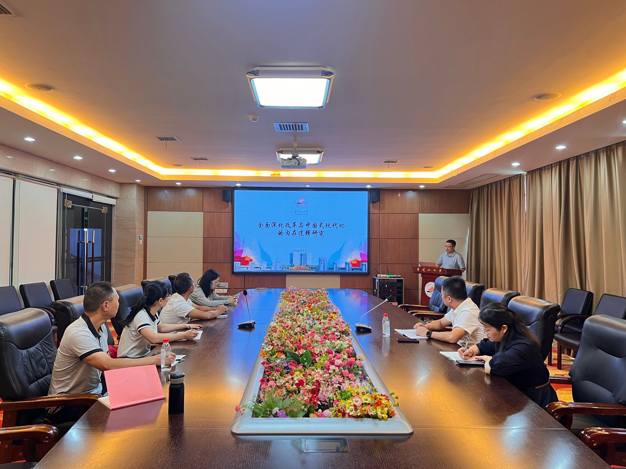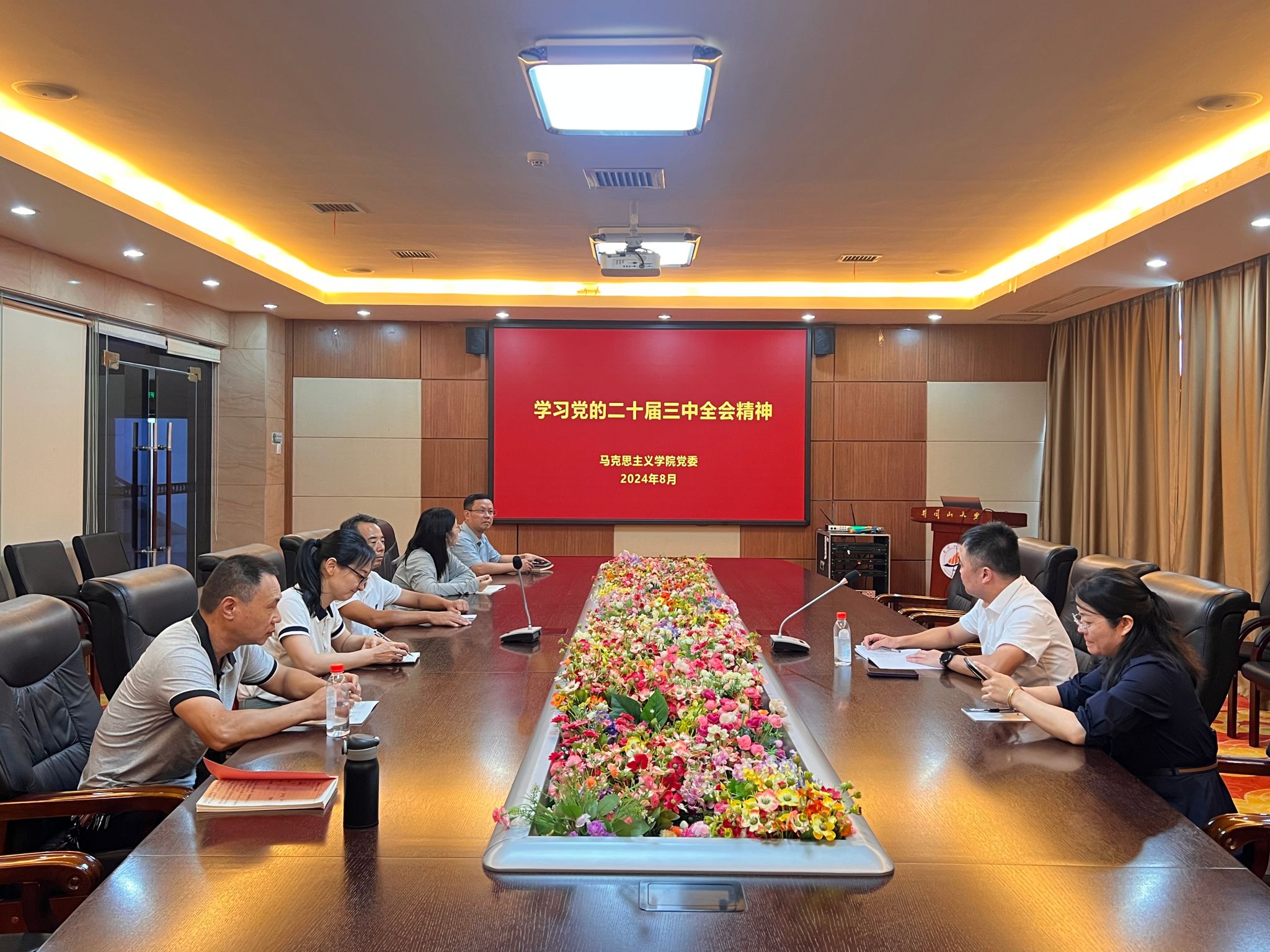 2024年8月24日,马克思主义学院开展了党委理论中心组学习会,会议由学院党委书记叶丹主持,学习党的二十届三中全会精神等内容。