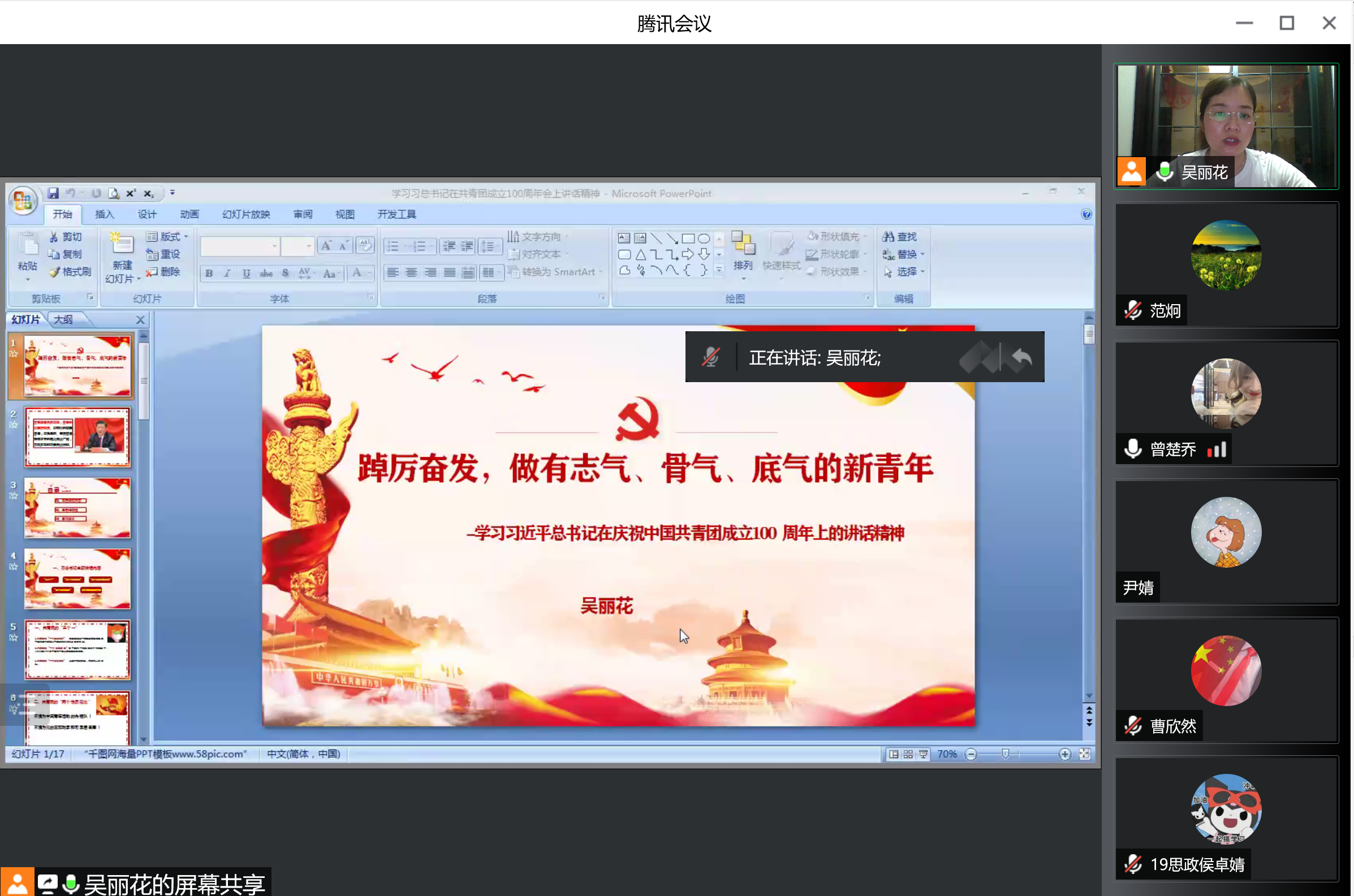 7月14日晚,马克思主义学院学生党支部开展了“七一”线上讲党课活动。本次党课由学院党委副书记吴丽花及党支部书记曾楚乔主讲,学院学生支部全体教师和学生党员与会学习。