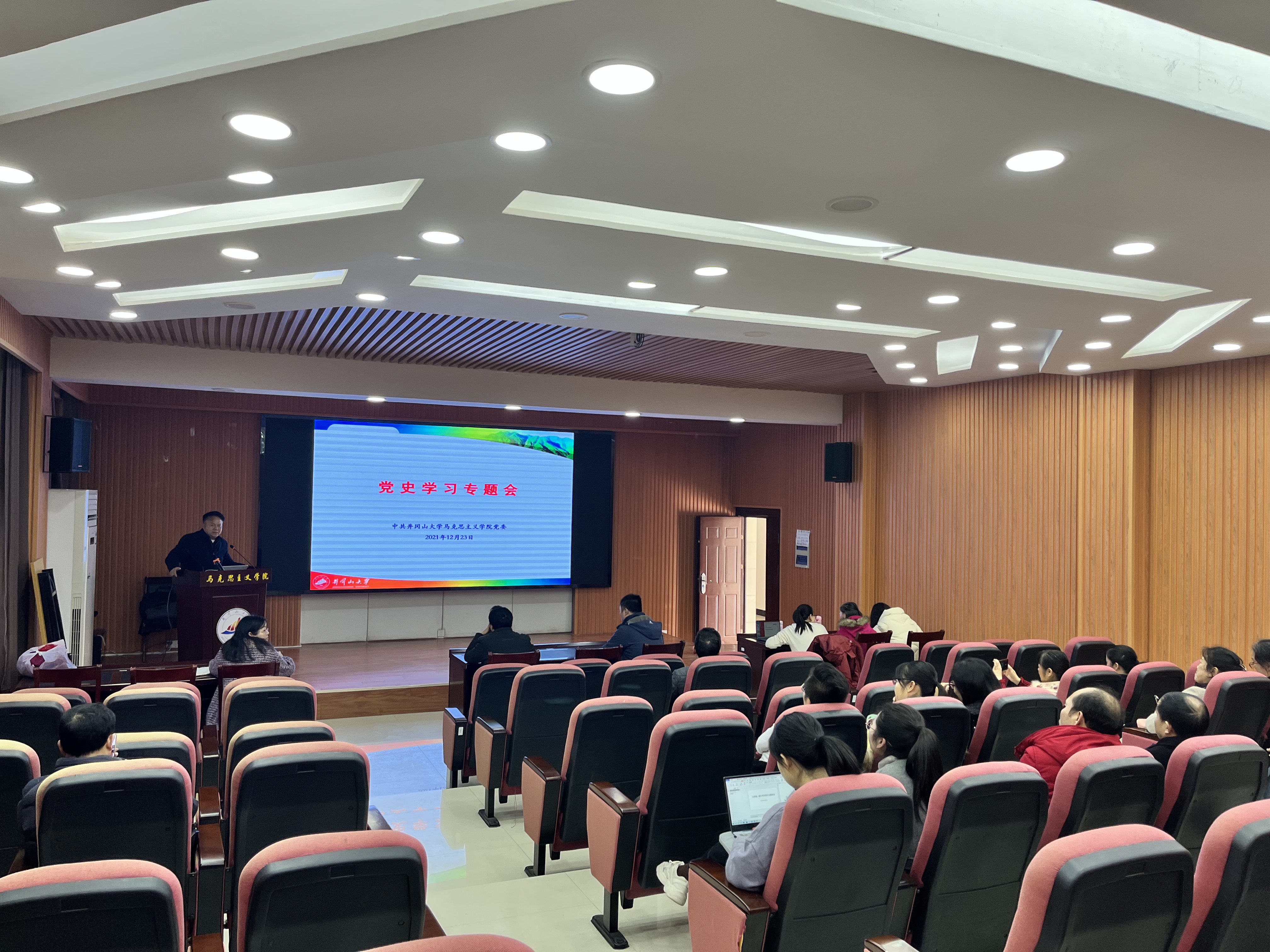 12月23日下午,学院组织召开党委理论学习中心组(扩大)会,举行党史学习教育专题学习。会议由学院院长孙斌主讲,全体师生党员参加。