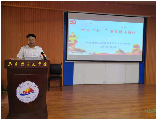 习近平总书记发表“七一”重要讲话后,全国上下掀起了学习重要讲话精神的高潮。7月5日,井冈山大学马克思主义学院党委在学院报告厅组织全院师生党员干部学习习近平总书记“七一”重要讲话精神。学院党委副书记、院长孙斌教授做了《学习“七一”重要讲话精神》的专题辅导报告。
