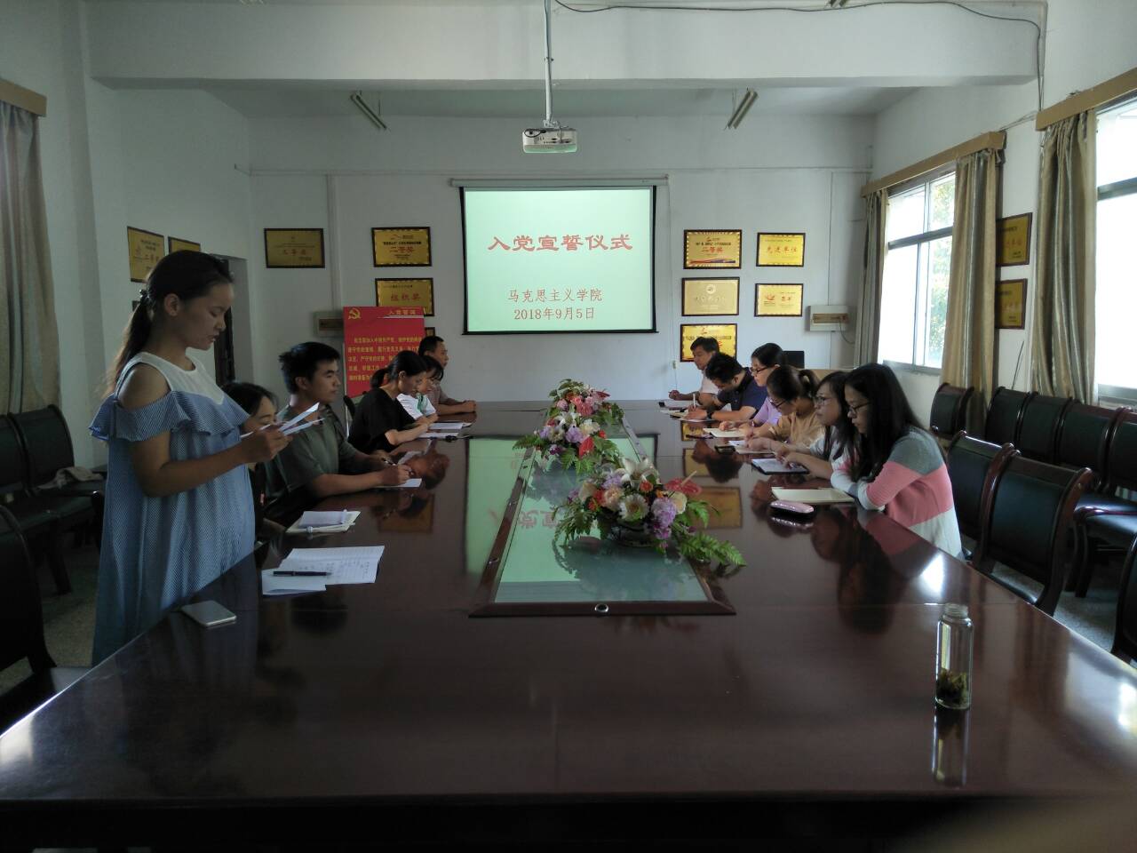 9月5日下午,学院学生党支部在学院会议室举行党员入党宣誓仪式。仪式由学院副书记叶丹主持,党委书记胡桂生出席,学生支部所有党员参加。