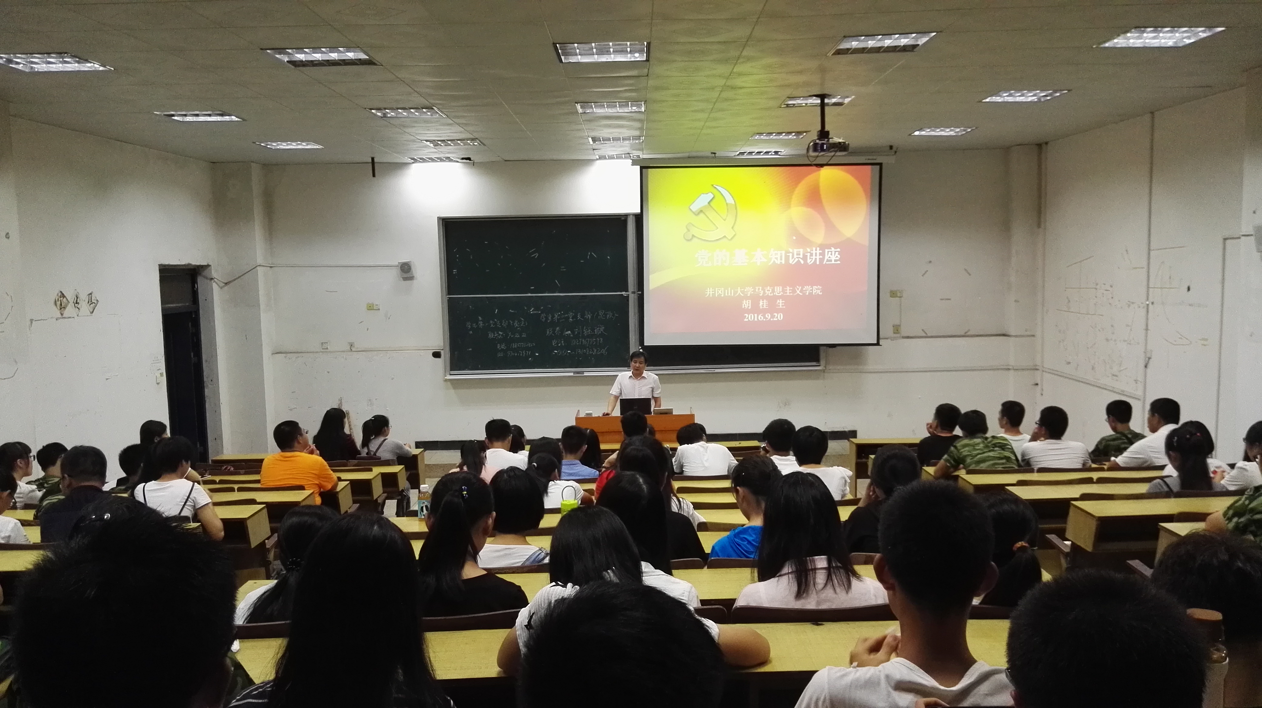 为了帮助新生了解党的基本知识、入党基本程序,指导新生端正入党动机,提高新生对党的认识,坚定入党决心。9月20日晚,学院举办了2016级新生党的基本知识讲座。讲座由学院党委书记胡桂生主讲。100余名新生听取了讲座。