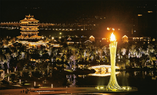 2023年7月28日晚,第31届世界大学生夏季运动会开幕式在成都东安湖体育公园主体育场举行。这是成都大运会主火炬。 新华社记者 曹祎铭/摄
