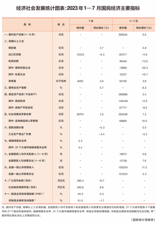 经济社会发展统计图表:2023年1—7月国民经济主要指标