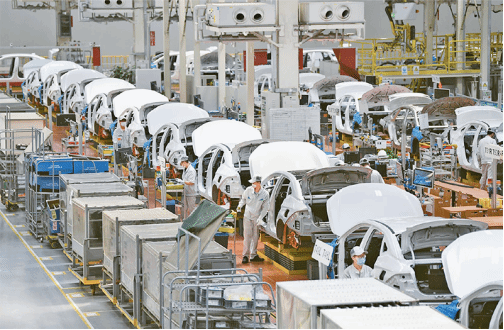 2023年4月12日,习近平总书记来到广汽埃安新能源汽车股份有限公司考察。他走进企业展厅、总装车间、电池生产车间等,了解企业突破关键核心技术和推动制造业高端化、智能化、绿色化等进展情况。图为广汽埃安新能源汽车股份有限公司总装生产线。 新华社记者 邓华/摄
