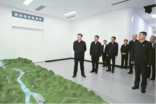 2023年12月14日至15日,中共中央总书记、国家主席、中央军委主席习近平在广西考察。这是14日上午,习近平在南宁市考察中国—东盟信息港股份有限公司,结合平陆运河沙盘听取西部陆海新通道骨干工程建设汇报。新华社记者 谢环驰/摄