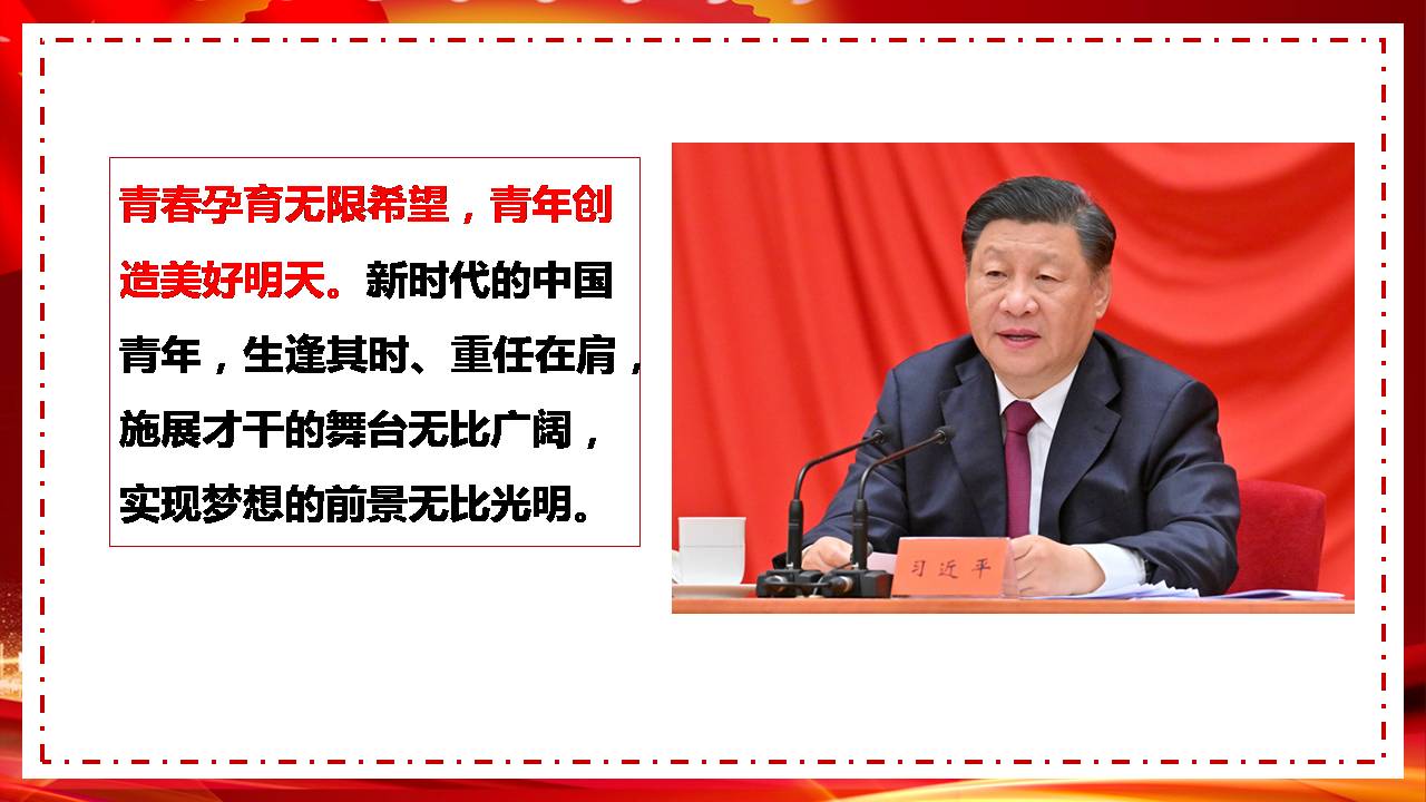 青春孕育无限希望,青年创造美好明天。一个民族只有寄望青春、永葆青春,才能兴旺发达。