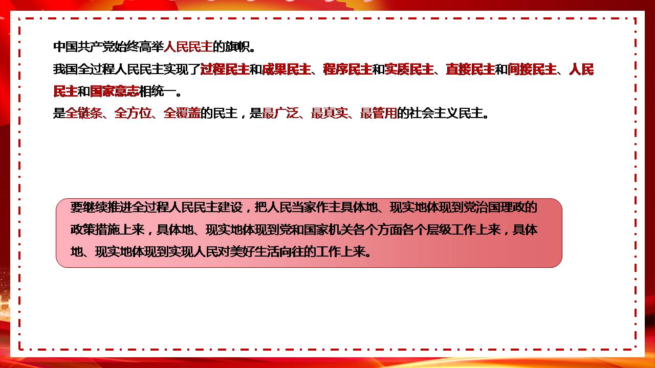第二、全过程民主准确把握人民民主真谛,发展全过程人民民主,必须始终坚持人民当家作主的制度体系。