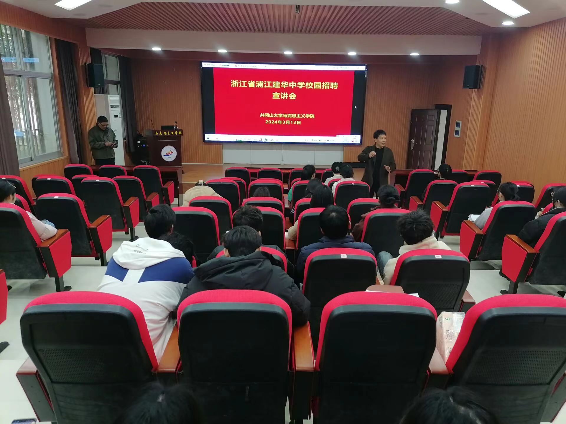 为做好学院毕业生就业工作,推动2024届毕业生高质量就业。3月13日上午,学院邀请浙江省浦江县建华中学在1栋103学术报告厅举行就业宣讲会。此次宣讲会由学院学院就业干事胡松主持,马克思主义学院、人文学院、数理学院的60余名学生参加。校招就处副处长郭建峰、学院党委书记叶丹到现场指导。