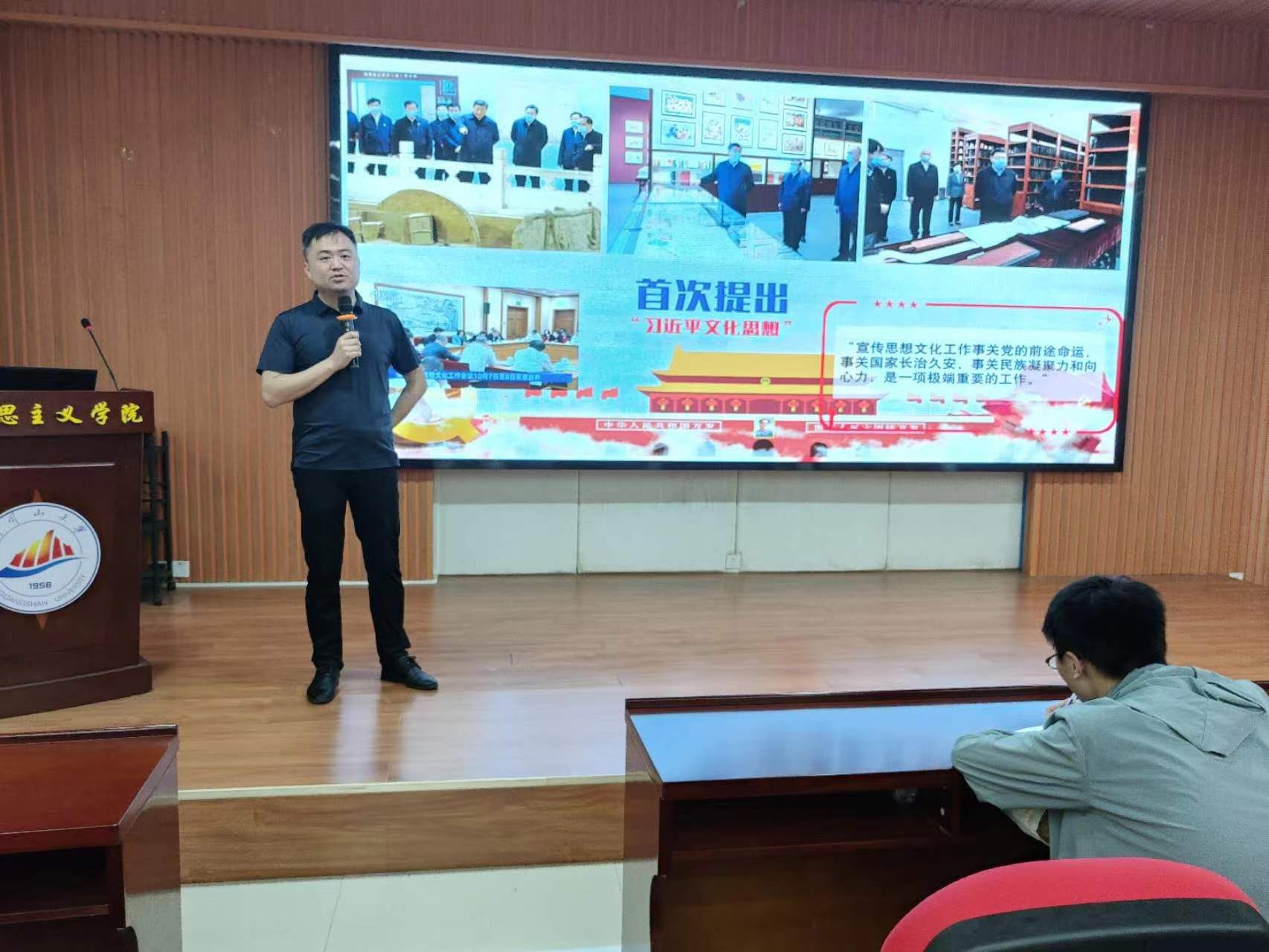 5月23日下午,马克思主义学院在1栋103开展“文化思想专题”的讲座。本次讲座由学院党委书记叶丹主讲,全体青马班及井冈摇篮班学员参加。