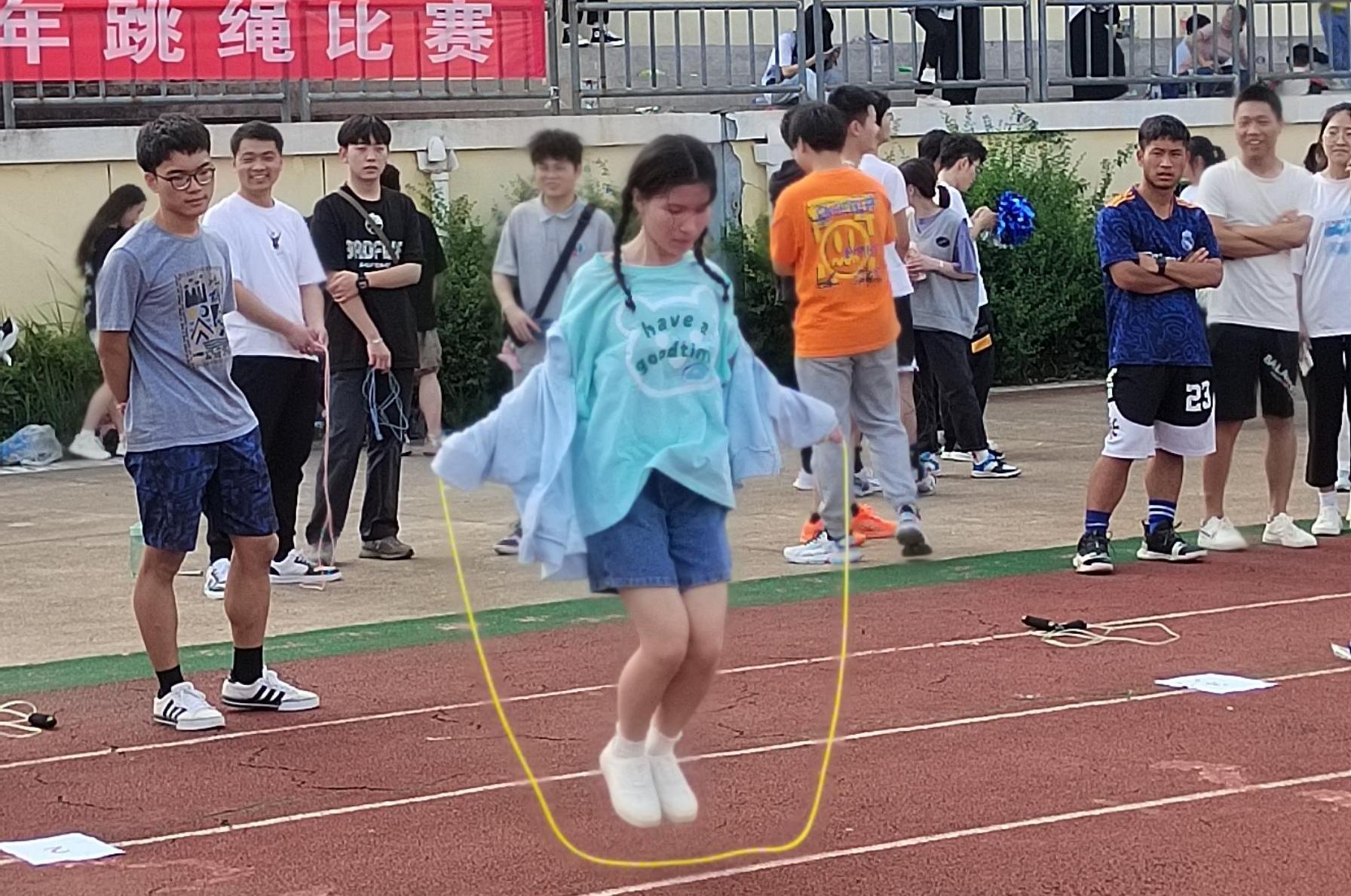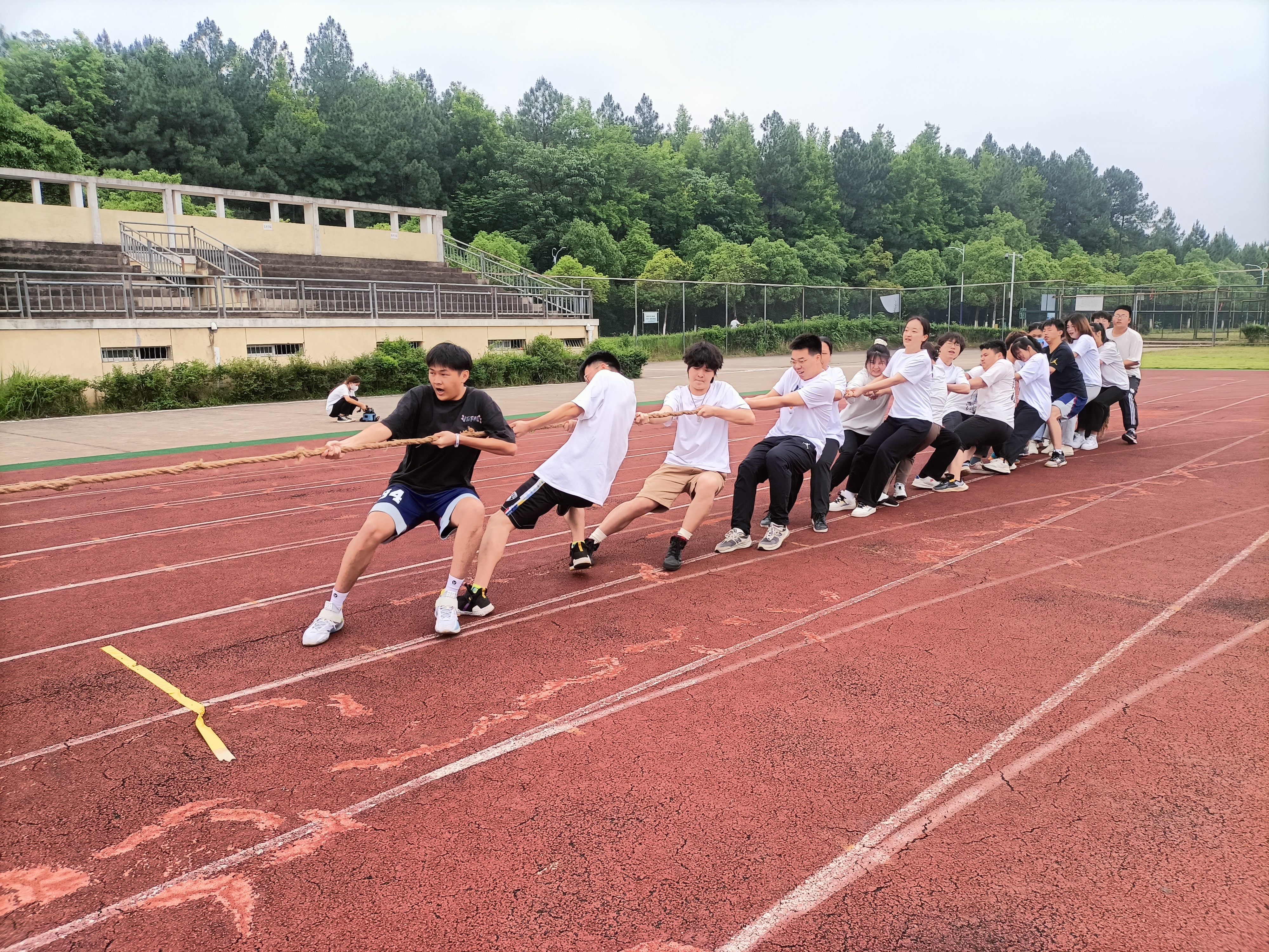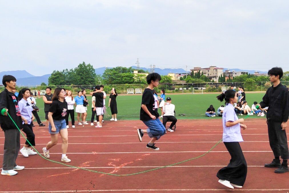 为提高学生身体素质,丰富校园文化生活,展现大学生精神风貌,5月21日,马克思主义学院在北区田径场参加学校统一组织的拔河比赛、跳绳比赛和有氧操比赛。