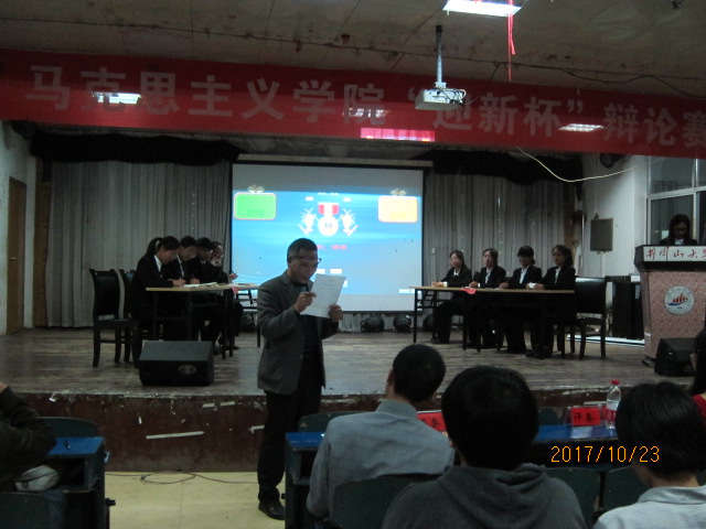 10月23日,我院在六栋演奏厅举办了第四届“迎新杯”辩论赛。李兴建老师、邹平林老师、王雨婷和唐旭晨同学担任了评委。 本次辩论赛的辩题为“电视征婚利大于弊还是弊大于利”,正方辩题为“电视征婚利大于弊”,反方辩题为“电视征婚弊大于利”。辩论过程中,双方辩手针锋相对,围绕着自己的辩题抛出强而有力的观点。在紧张而又刺激的自由辩论环节,正方辩手与反方辩手进行了更为激烈的唇枪舌战,使得全场气氛高涨,把辩论赛推向最高潮,掌声不断!