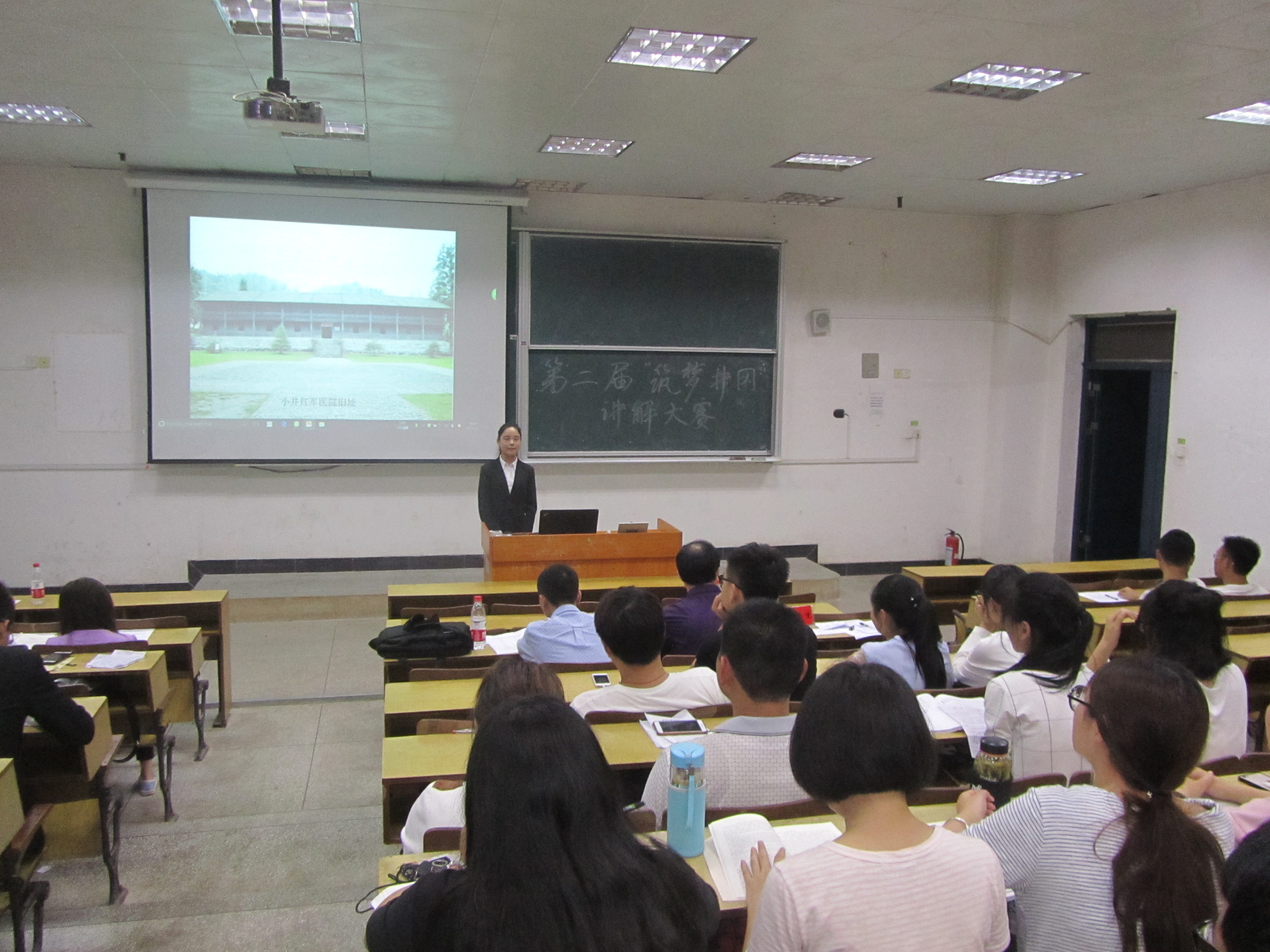 为使井大学子深入学习井冈山精神,培养一批井冈山精神的学习者、传播者。2017年5月2日晚,我院社会实践部联合井冈山精神研究会在5栋205教室举办了第二届“筑梦井冈”讲解大赛。我院欧阳小华、邹平林、胡桂生老师莅临现场点评。讲解大赛由张鹤和王恒磊主持。 本次讲解大赛,选手从黄洋界、八角楼、北山烈士园、龙江书院、三湾改编遗址、小井红军医院、小井红军烈士墓七个地点选取其一,进行了10分钟左右的讲解。各位选手精心准备,充分发挥个人才能,展示自我风格,很好地诠释了讲解的主题。