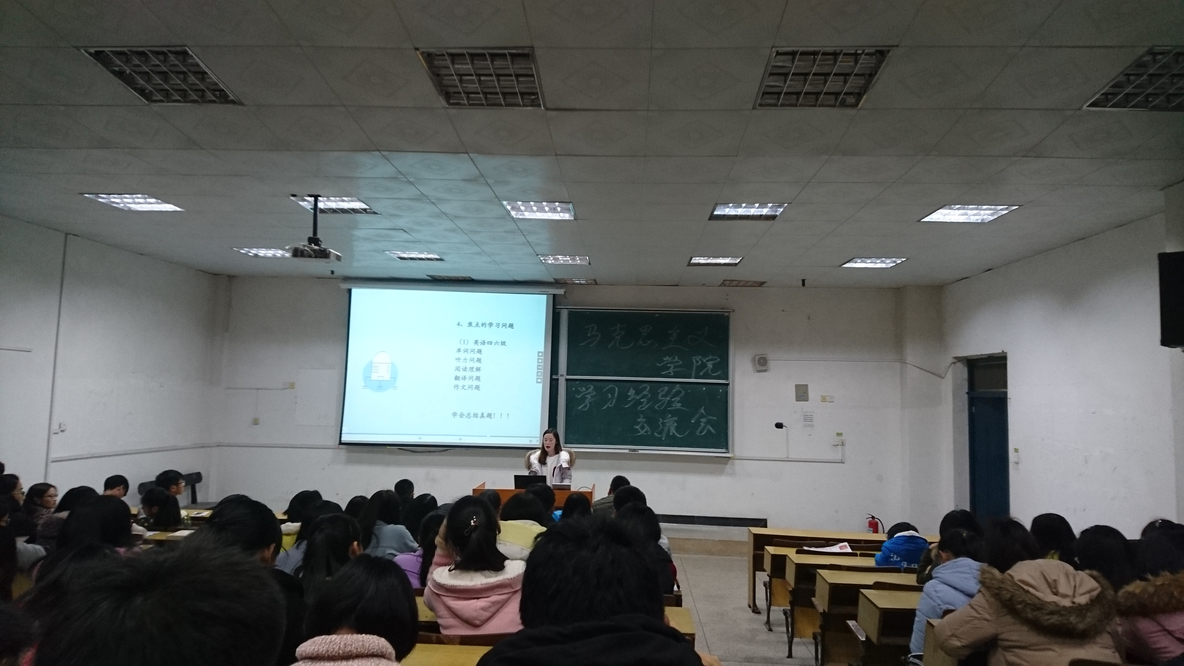12月19日,我院举办新老生学习经验交流会。团委老师刘香玲、老生代表党史14(本1)师闪闪,思政15(本1)梁小珑、王雨婷和2016级全体同学参加了交流会。