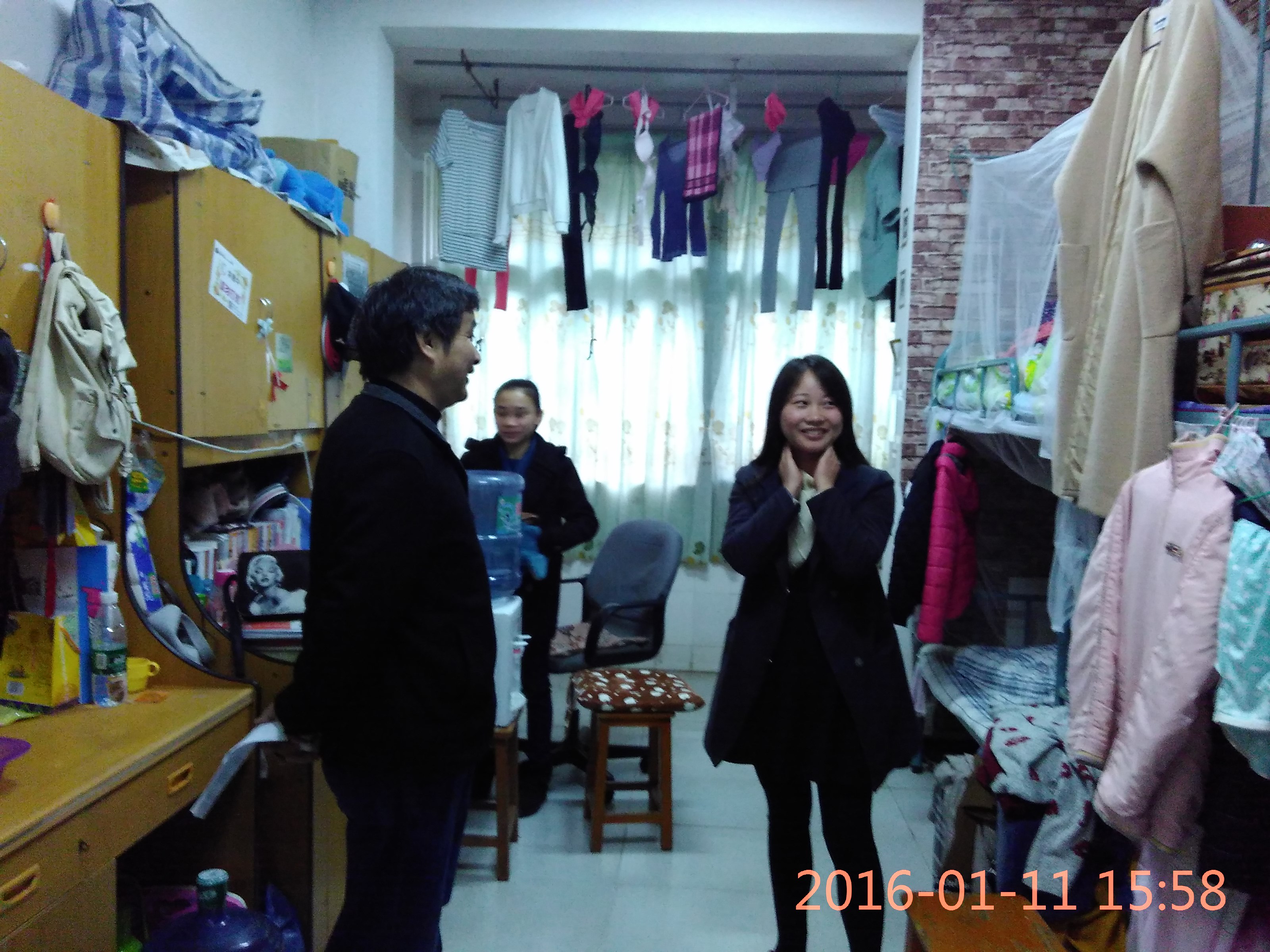 临近期末,为确保学生宿舍安全,11日下午,我院党委书记胡桂生在辅导员刘香玲老师的陪同下,走访学生宿舍。