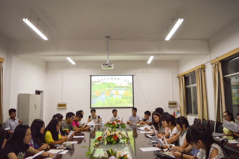 2014年9月28日晚,马克思主义学院第三届团委学生会换届大会在学院办公室举行。学院副院长张梅龙,团委学生科负责人刘香玲老师以及第二届、第三届团委学生会干部出席了会议。