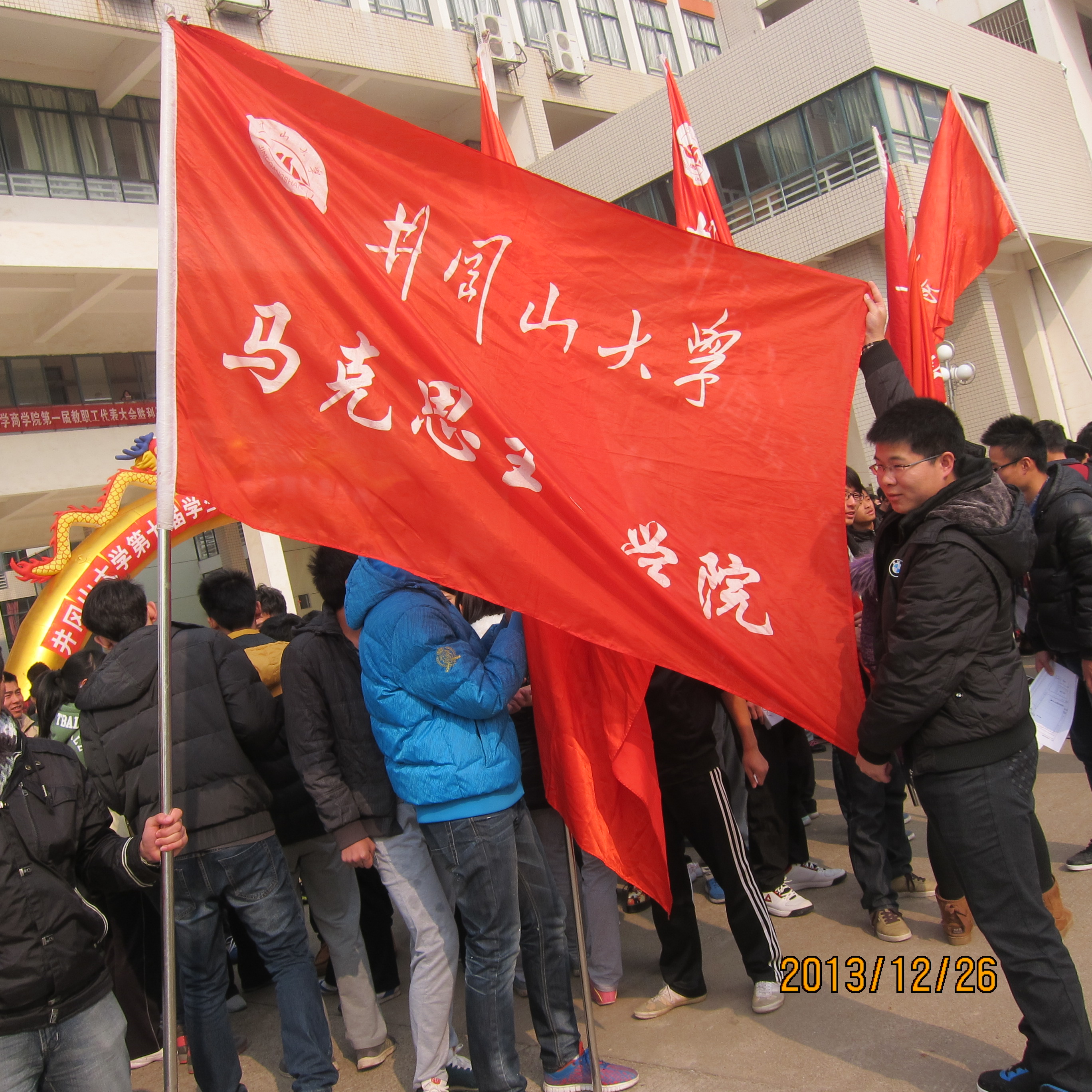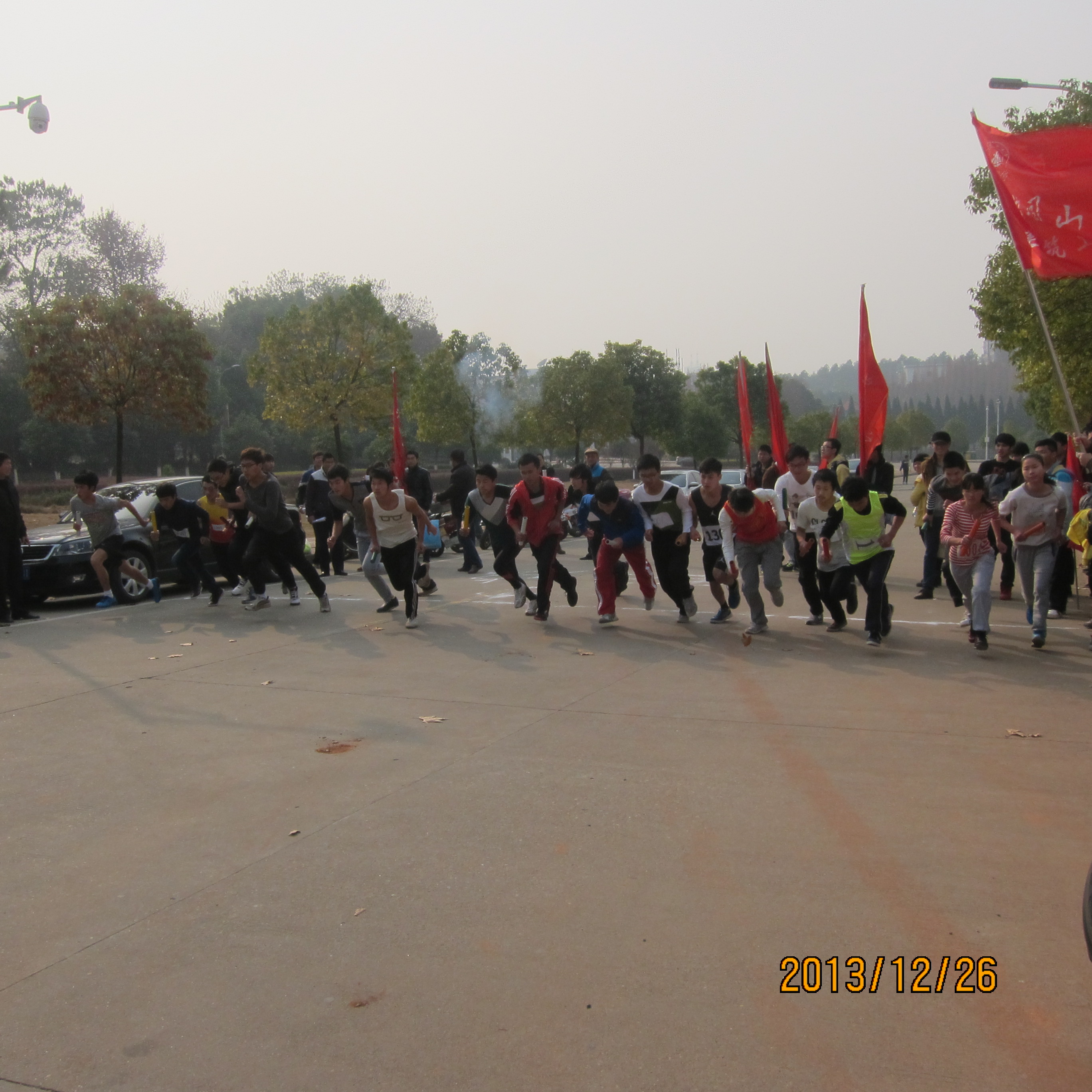12月26日14:00,我校“学生阳光体育冬季长跑”活动启动仪式在10栋数理大楼前举行。参加此次活动的有校领导以及各学院代表队,活动由体育学院副院长杜和平老师主持。我院组织了一支10人的队伍参加比赛。13党史本(1)班全体同学都参加了此次活动。