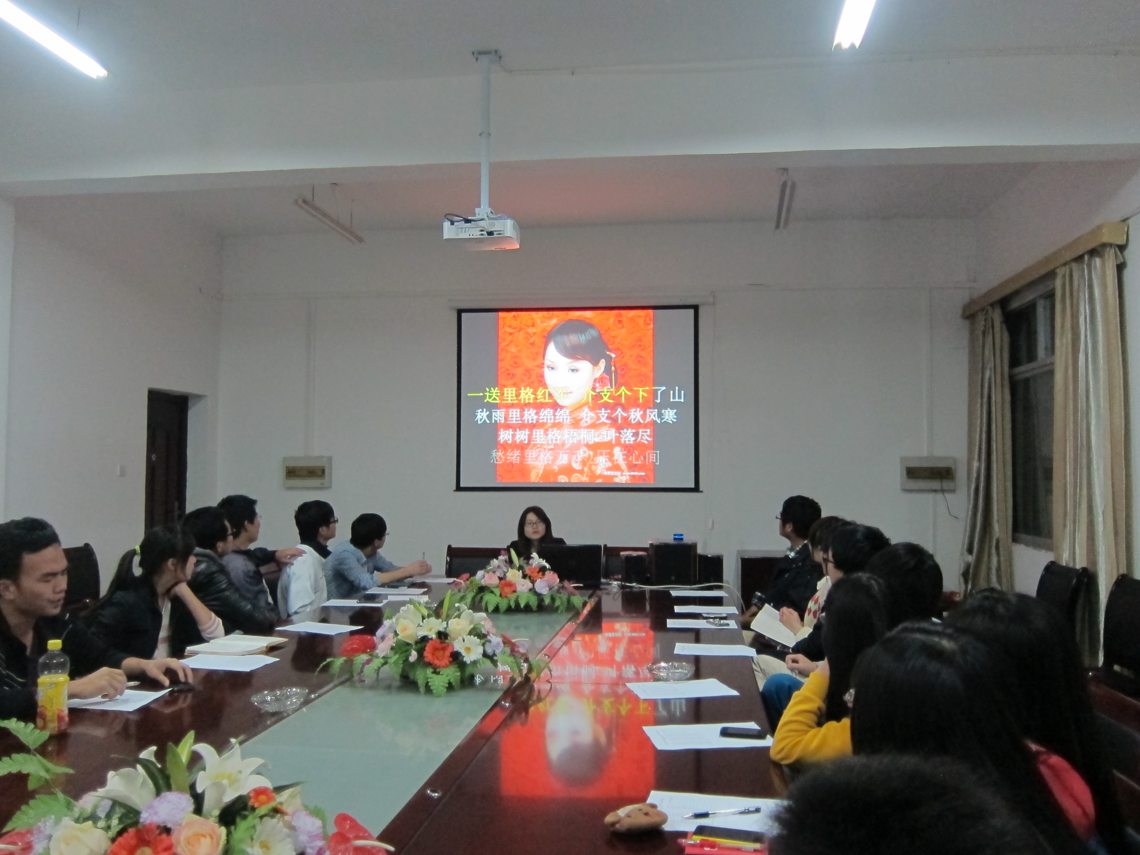 为了让我院第一期青马班学员更好地学习红色文化,4月12日晚,我院第一期大学生骨干培训班第三项——“学习红歌”活动在学院会议室如期进行,这次活动由团委曾娟玲老师主持,青马班全体成员参加了这次活动。