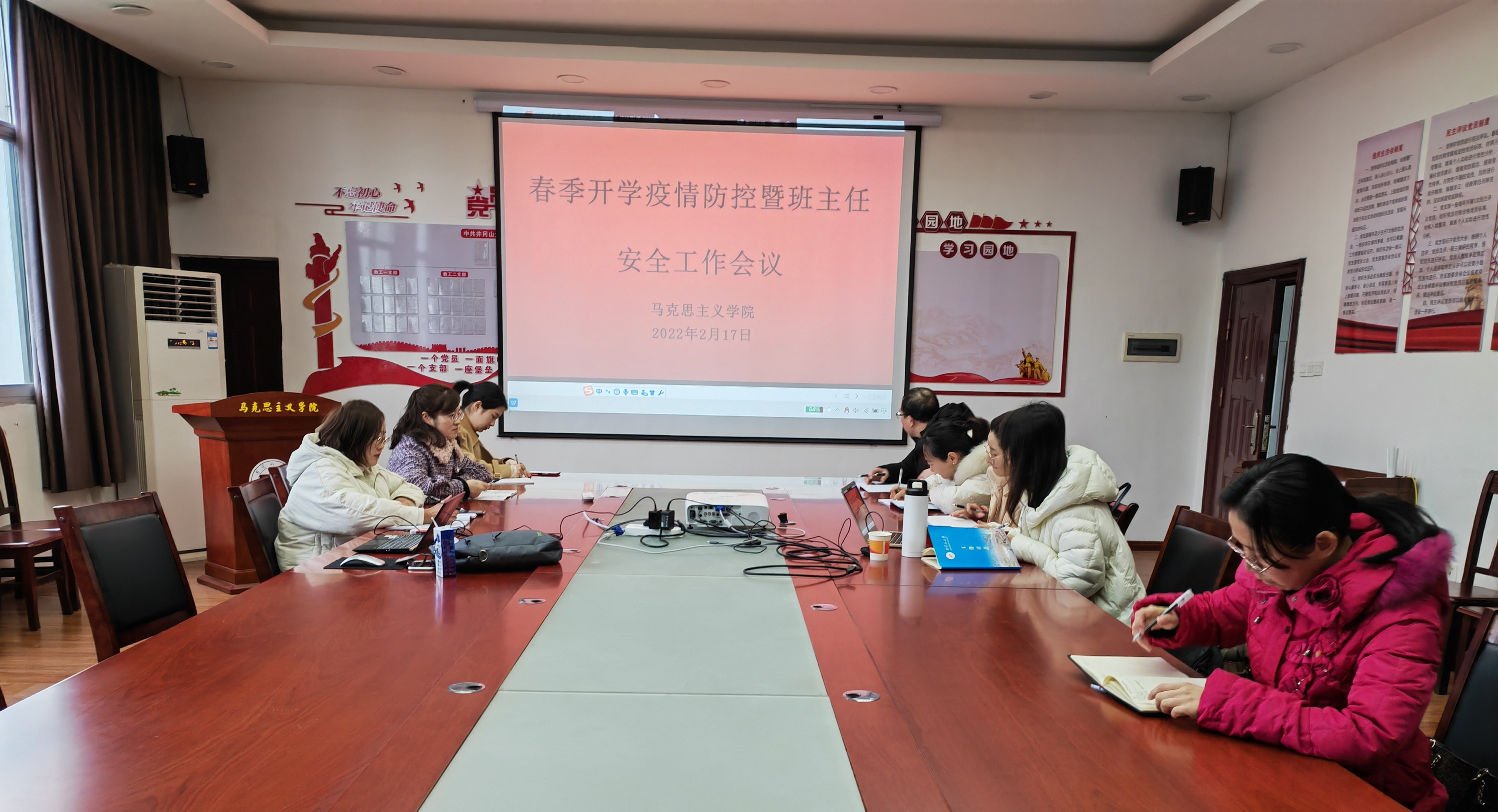 为做好学院春季开学疫情防控工作,保障新学期学生各项工作顺利开展,2月17日下午,马克思主义学院在1栋307会议室召开了疫情防控暨班主任安全工作会议,会议由党委副书记吴丽花主持,学院学生科全体成员、各班班主任、辅导员参加。