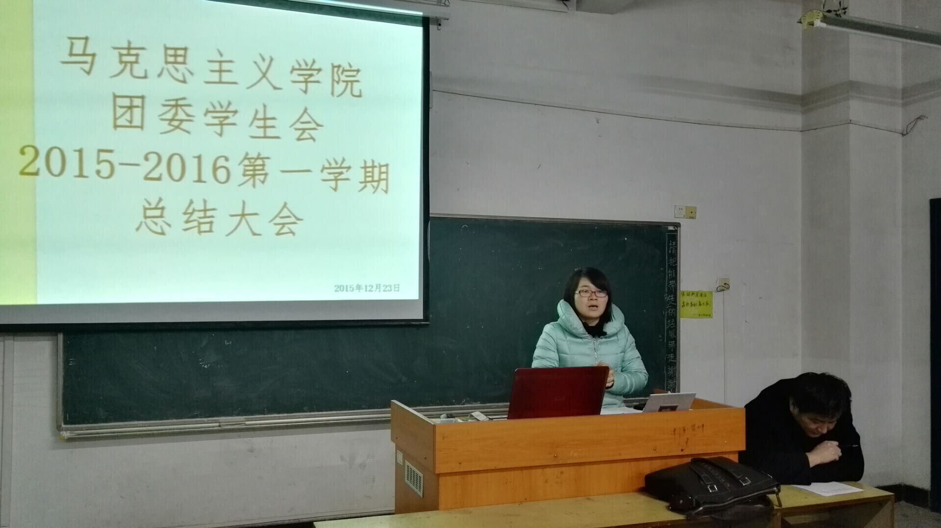 12月23日,我院团委学生会在五栋305举行2015~2016学年第一学期总结大会。党委书记胡桂生、团委学生科刘香玲老师、全体学生会干部及各班班长、团支书共计60余人参加了本次总结大会。