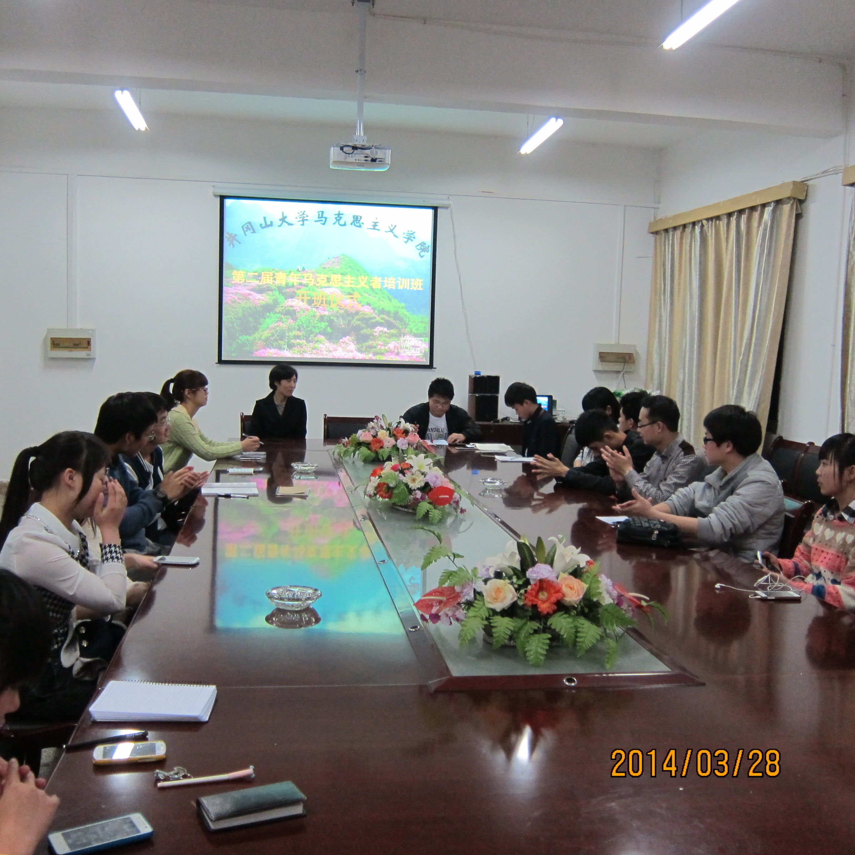 为增强青年学生的政治素质、提升思想境界、优化能力结构、锤炼作风品格、打造一支高水平的学生干部队伍,我院于2014年3月28日晚7点钟在会议室举行第二期青年马克思主义者培训班开班仪式。本次开班仪式的主要成员为马克思主义学院教务科刘老师、团委学生会主席王传府同学以及团委、学生会干部、各班班干部以及各大队在学术、科技、文化、实践等方面业绩突出的学生。