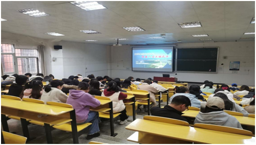 曹老师向同学们展示几位大学毕业生参加国家基层项目的风采,以身边实例告诉同学们树立正确的就业观念,将个人理想与国家理想相统一,将小我融入大我,到国家最需要的地方去实现自己的人生价值。讲座最后,曹老师与同学们亲切交流,为同学们答疑解惑,学习氛围融洽。