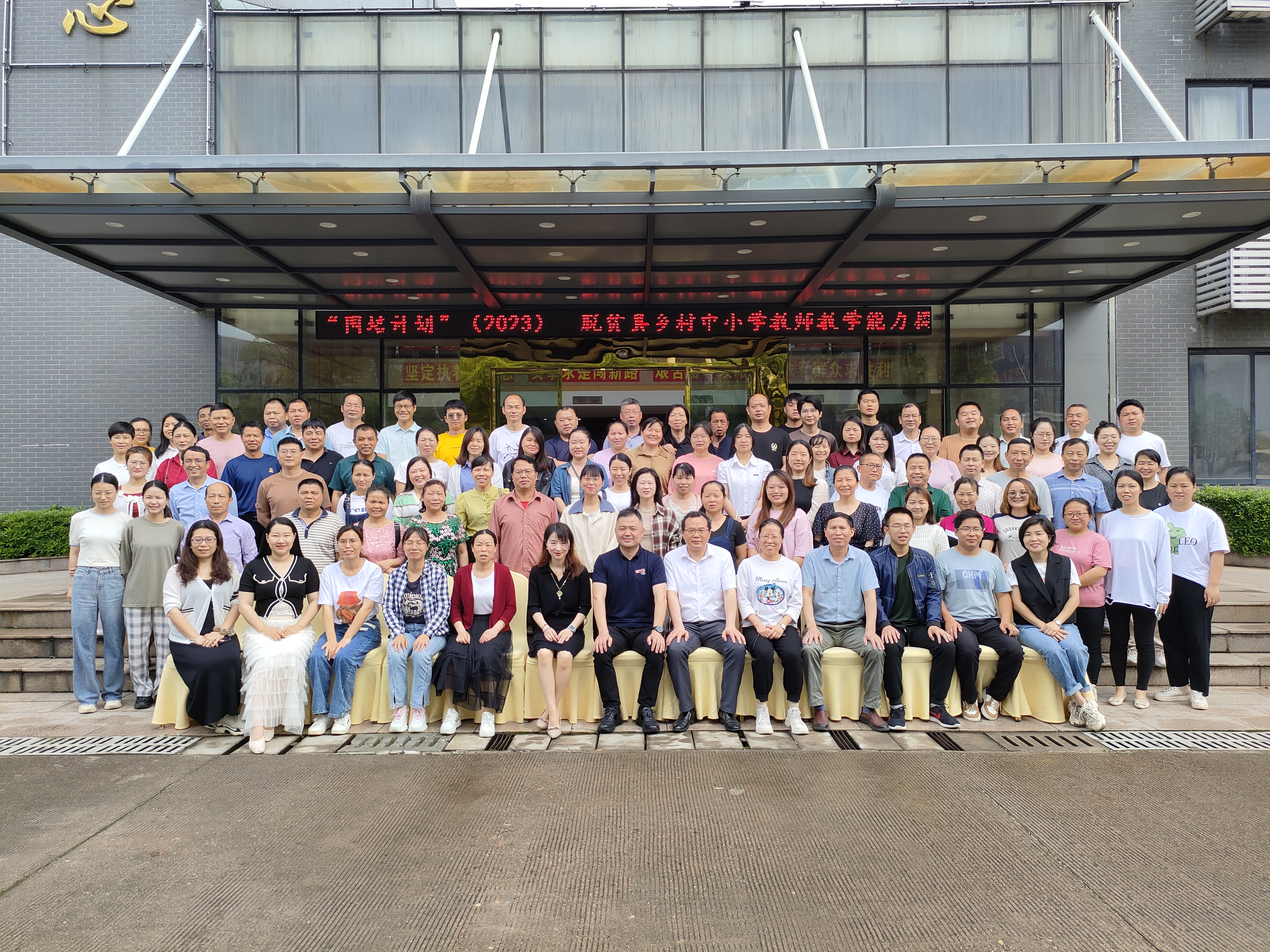周庆峰博士在主持中对本次培训的要求及纪律向学员作了详细介绍,希望学员们一定要严守纪律,相互交流,取长补短,真正做到学有所得,学有所思,学有所获,坚持“为党育人、为国育才”,努力做精于“传道授业解惑”的“经师”和“人师”的统一者。随后,学员们和领导前往一楼大厅门口合影留念。(撰:饶华萍 审:曾楚乔 胡松 叶丹)