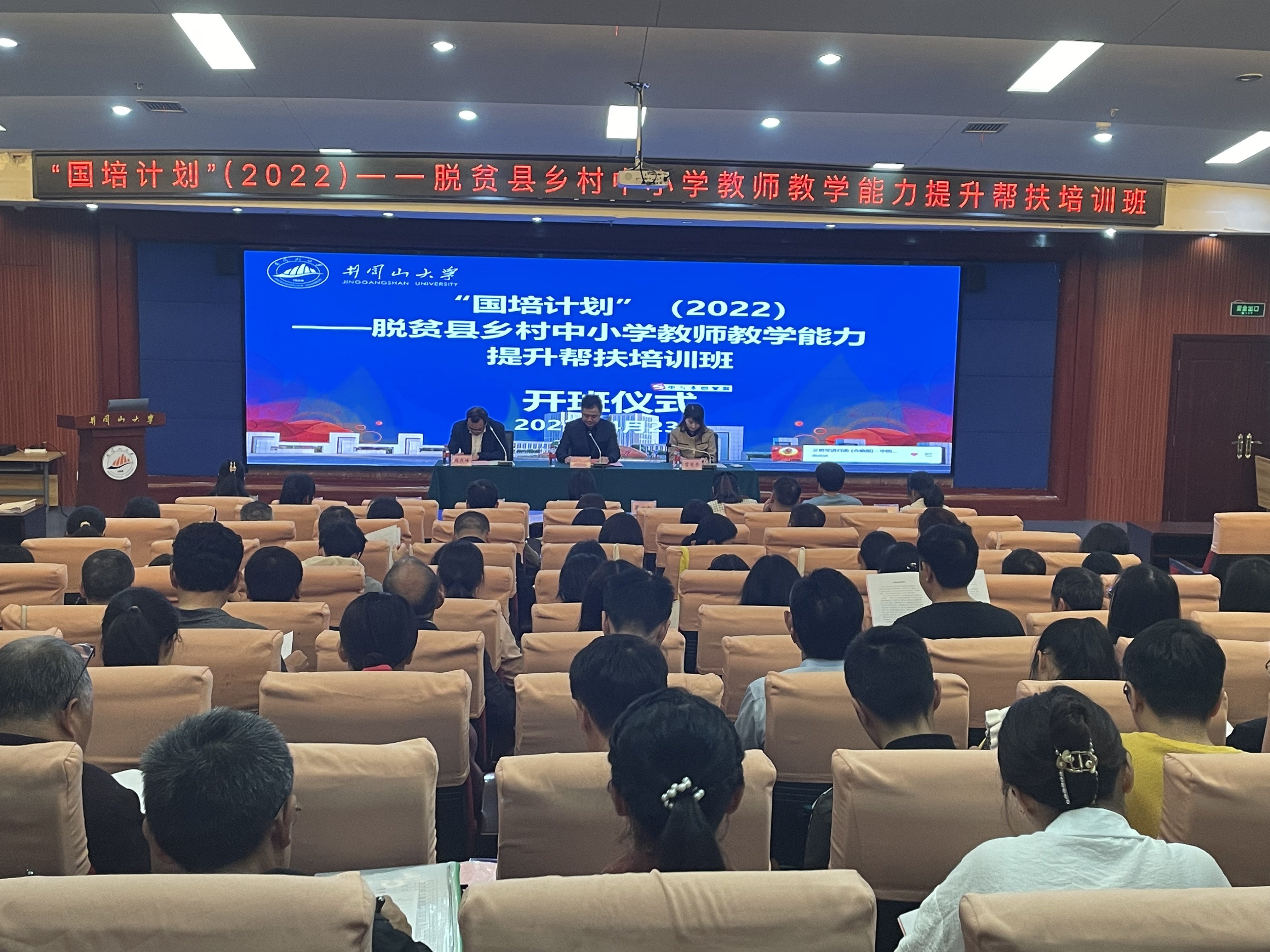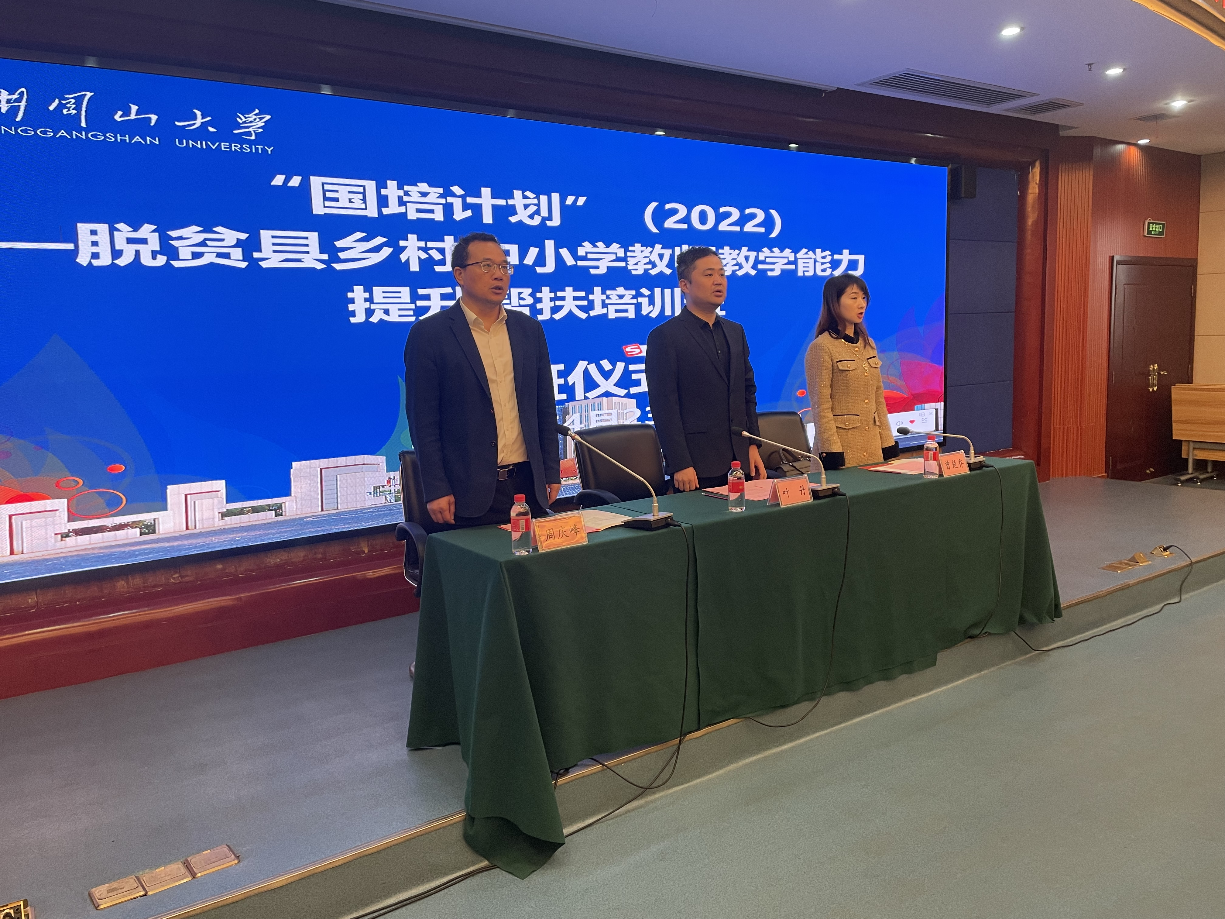 4月23日上午8:30,由我校承办的“国培计划(2022)”——脱贫县乡村中小学教师教学能力提升帮扶培训班开班仪式在我校学术交流中心报告厅隆重举行。我校马克思主义学院党委书记把本次培训项目实施负责人叶丹、学院周庆峰博士及曾楚乔老师、继续教育与培训学院相关负责人出席开班典礼,来自脱贫县的90名中小学教师参加开班仪式。