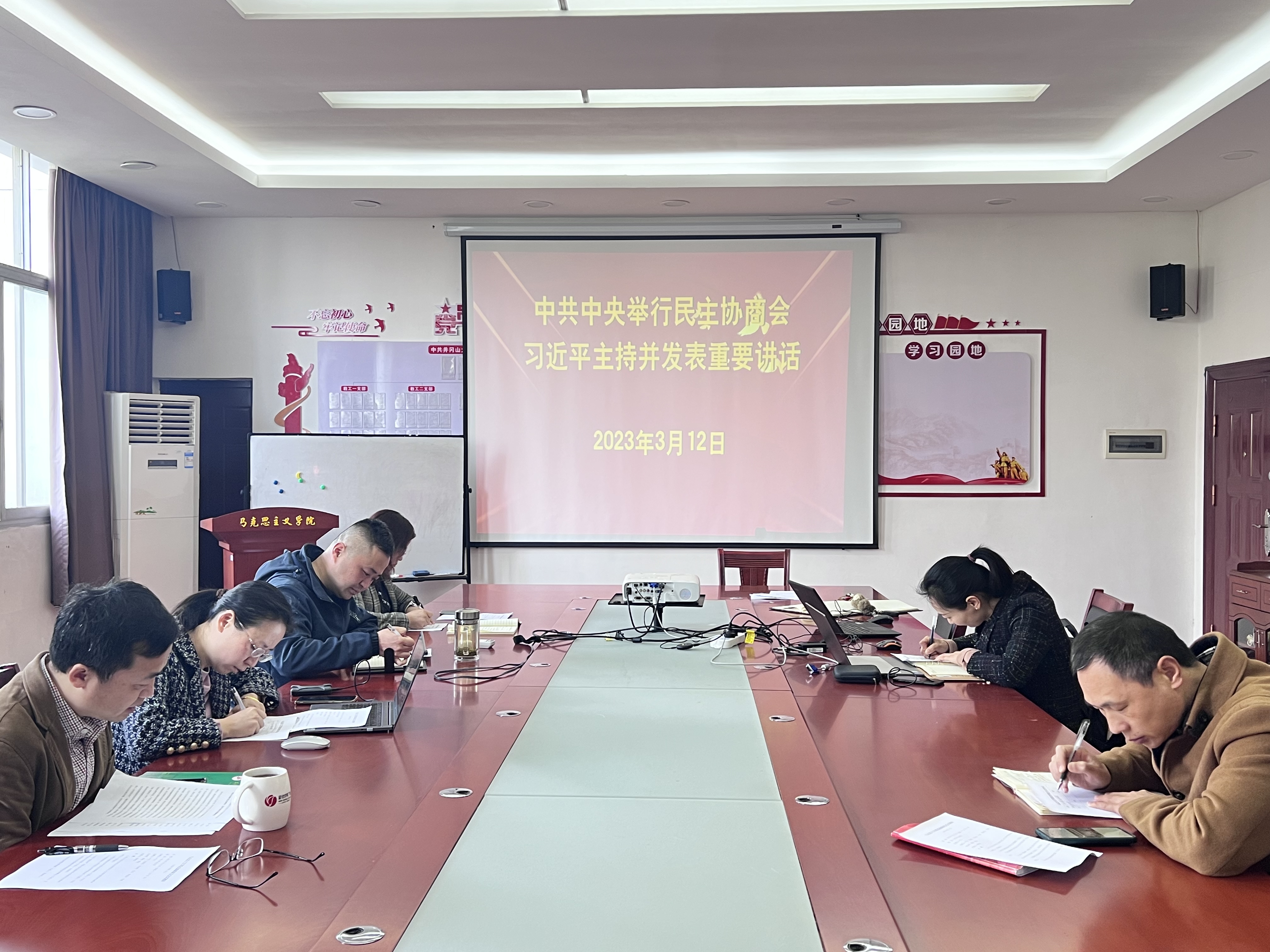 2023年3月13日,马克思主义学院在1-307会议室召开党委理论中心组学习会,专题学习中共中央2月28日在中南海举行的民主协商会上习近平总书记发表的重要讲话精神。本次学习由学院党委委员、副院长石劲松领学,全体班子成员参加。