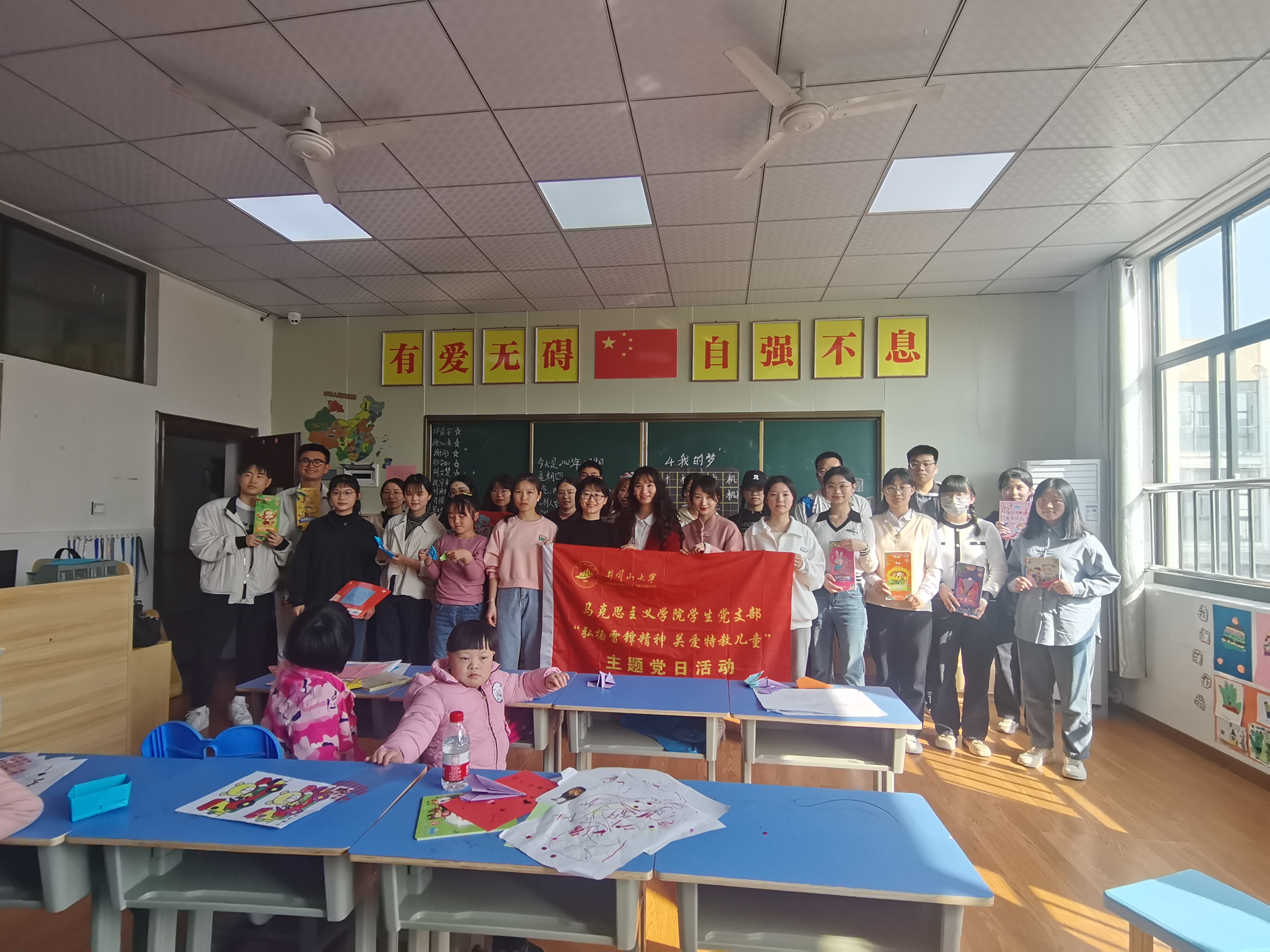 2023年3月5日是第24个中国青年志愿服务日,也是第60个学雷锋纪念日。为深入贯彻习近平总书记关于深入开展学雷锋活动的重要指示精神,让雷锋精神在新时代绽放更加璀璨的光芒,马克思主义学院学生党支部于2023年3月9日下午赴吉安特殊教育学校,开展“弘扬雷锋精神,关爱特教儿童”主题党日活动。