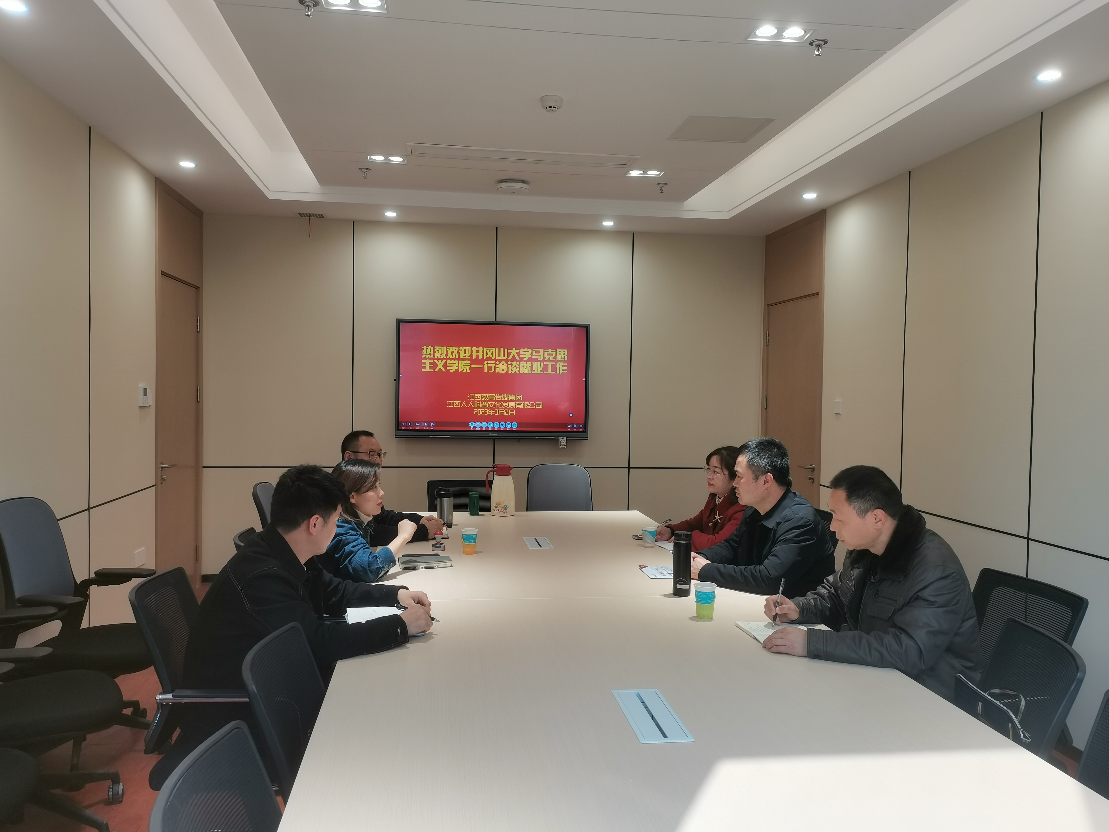 为贯彻落实学校就业工作部署,进一步拓宽学院毕业生就业渠道,全力促进毕业生高质量就业,3月2日,学院党委书记叶丹、党委副书记吴丽花及学生科负责人胡松一行三人赴江西教育传媒集团旗下公司开展就业市场拓展与考察工作。江西人人科普文化发展有限公司董事长张颖一行热情接待。