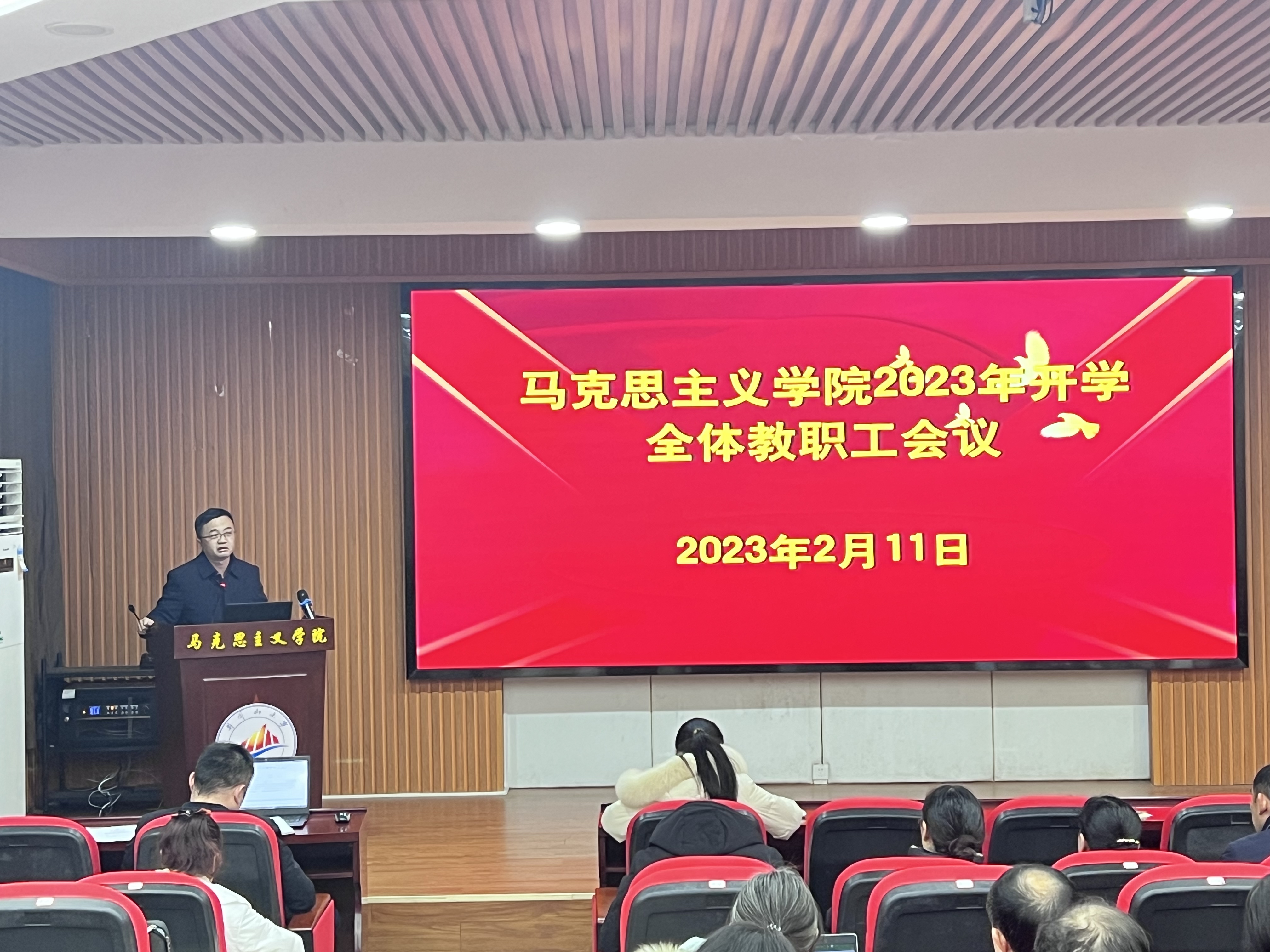 执梦起航新征程,砥砺奋进再出发。2月11日下午,学院于103报告厅召开了新学期全体教职工大会,会议由学院党委书记叶丹主持,全体领导班子成员及教职工参加。