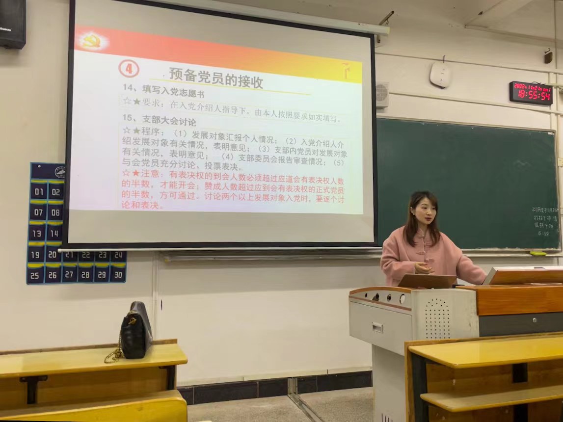 为加强对入党积极分子的教育培养,提高思想政治觉悟,进一步端正入党动机,马克思主义学院于11月20日至25日举办2022年第二期入党积极分子培训班,学院全体新确定的入党积极分子参加了培训。