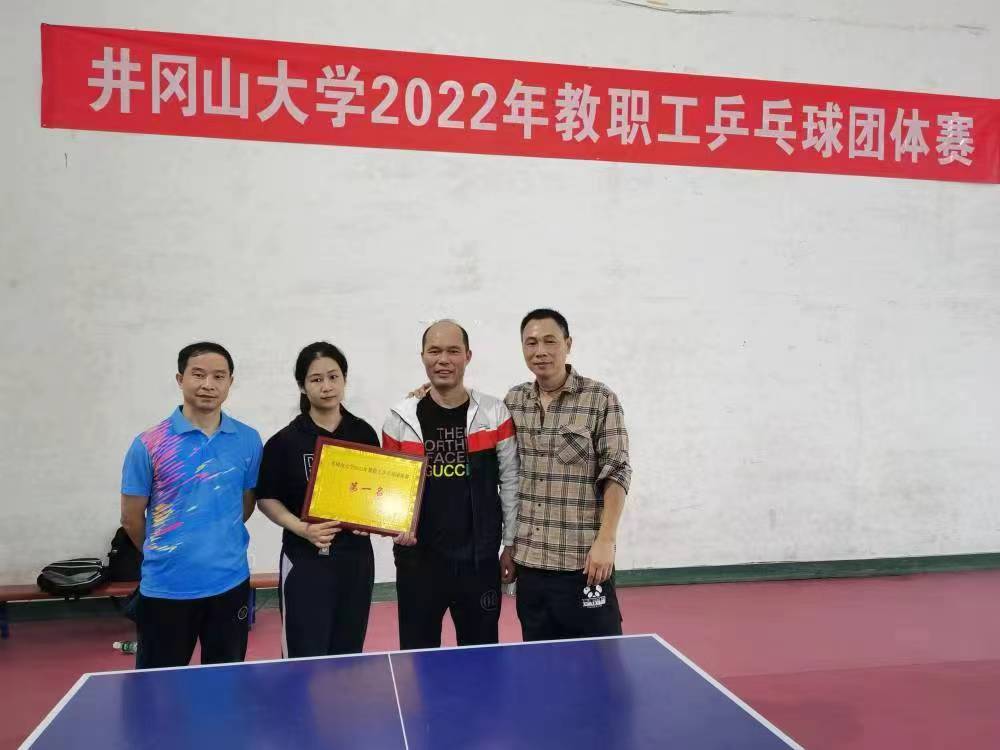 10月16日下午,在迎接党的二十大胜利召开之际,井冈山大学2022年教职工乒乓球赛圆满落幕。在学校工会精心筹备下,各学院和附属单位代表队以饱满的热情积极参与比赛,我院精心组织,认真备赛,最后由教师刘怡、胡松、欧阳小华、邓崇卿组成的参赛队伍,敢于突破自我,充分发扬拼搏向上的顽强精神,挥洒汗水,奋力拼搏,喜获团体第一名的优异成绩,充分发扬了教师“潜心育人,健康工作”的工作理念。(文:杨鹏,审:胡松,吴丽花,叶丹)