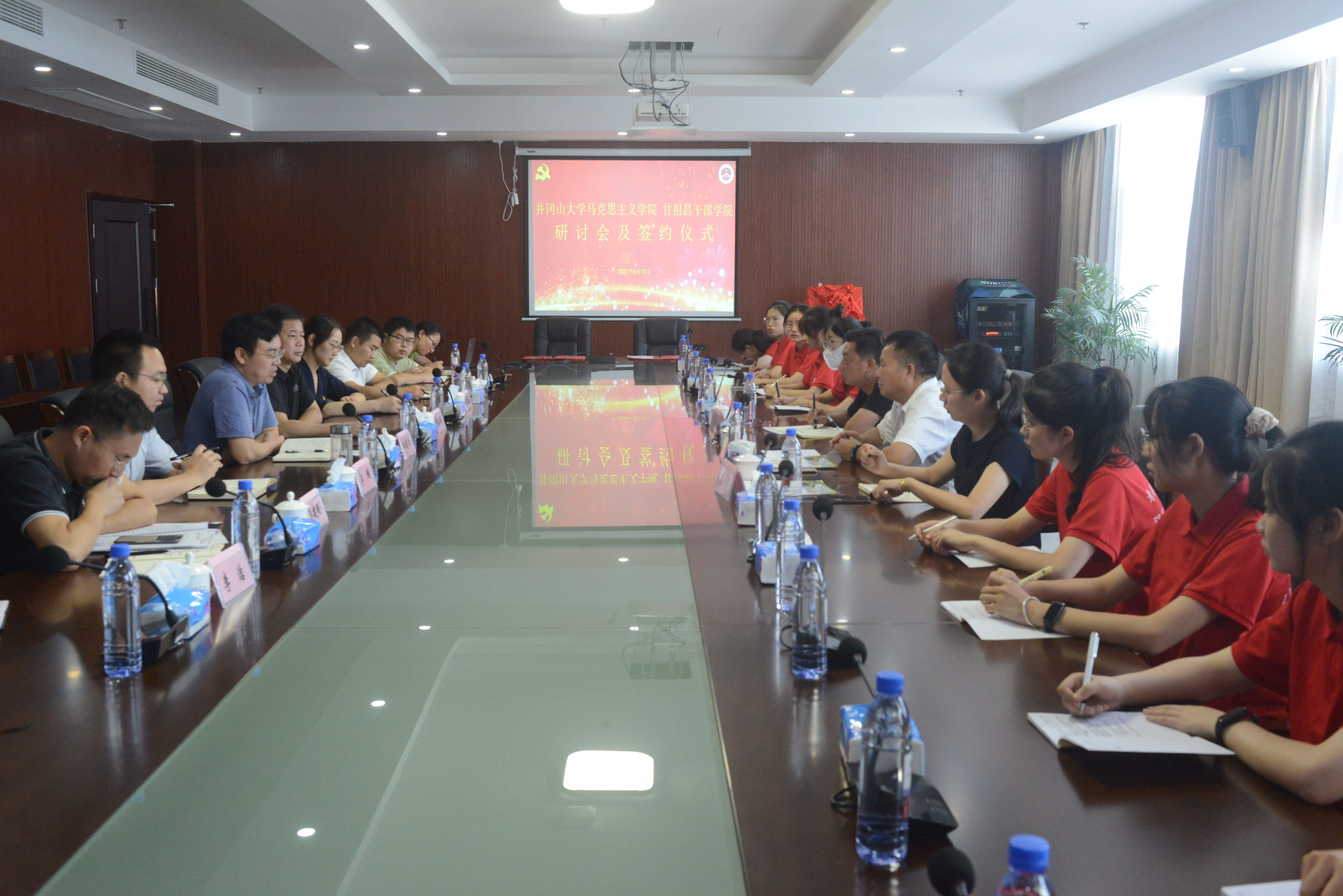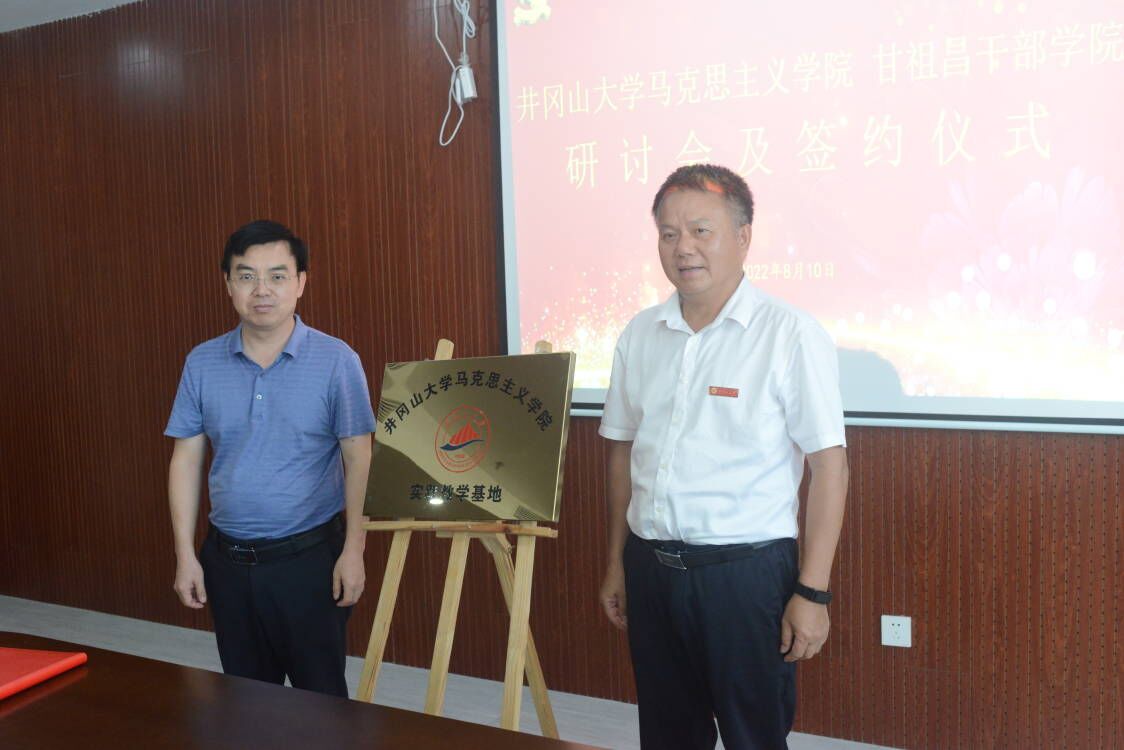 2022年8月10日,我院院长孙斌、副院长毛丹及红色走读团队师生赴甘祖昌干部学院开展座谈研讨,双方就新时代用好红色资源,传承红色基因的路径展开深入的交流探讨,并希望以此为契机,进一步深化合作,通过充分利用莲花丰富的红色教育资源优势,达到优势互补、共促发展目的。孙斌院长与甘祖昌干部学院常务副院长林俊江分别代表双方签订校外实践教学基地建设协议书,并为实践教学基地揭牌。(文:毛丹;审:孙斌、叶丹)